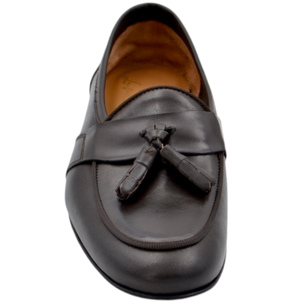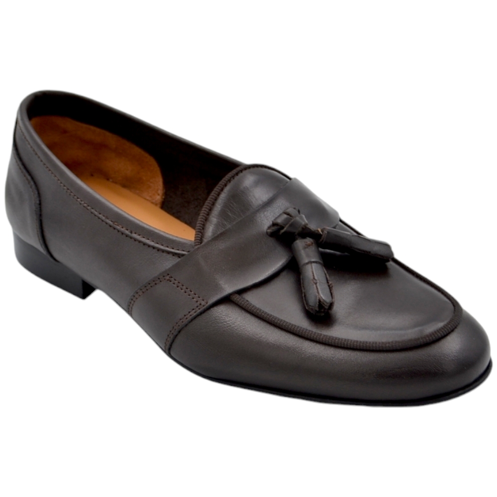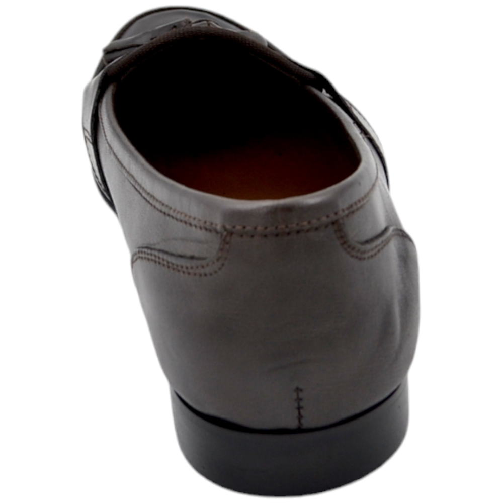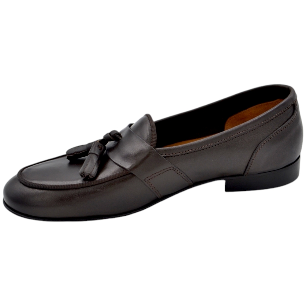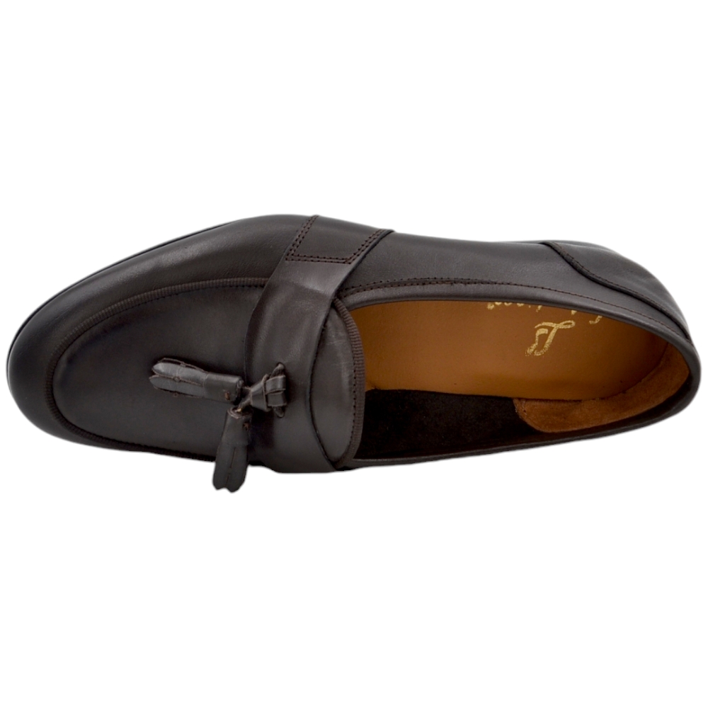 Scarpa mocassino uomo ls con bendina e bon bon vera pelle matte marrone cucita a mano fondo cuoio antiscivolo centrale