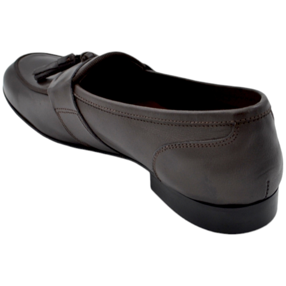Scarpe mocassino uomo vera pelle abrasiva marrone liscio con fondo cuoio sottile light classico sporti made in Italy.