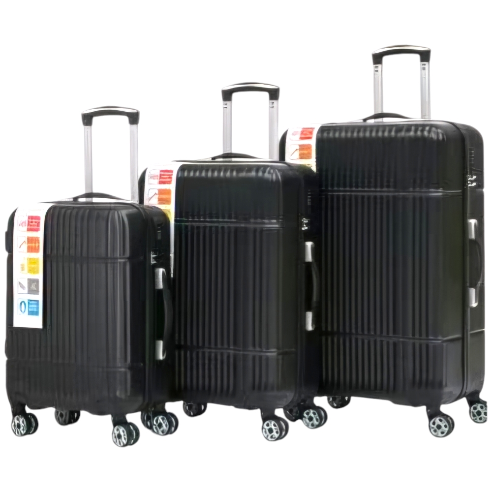 Set di 3 valigie nero con struttura rigida trolley valigie bagaglio a mano