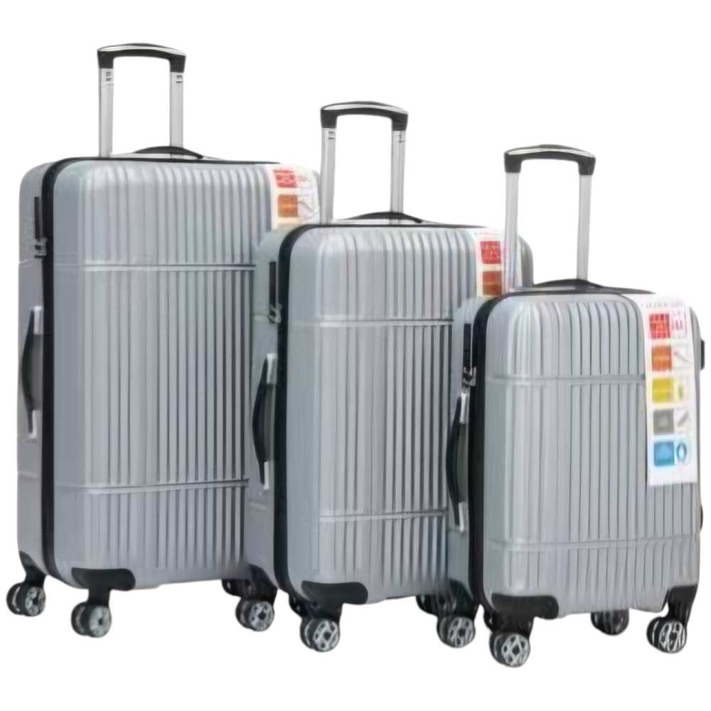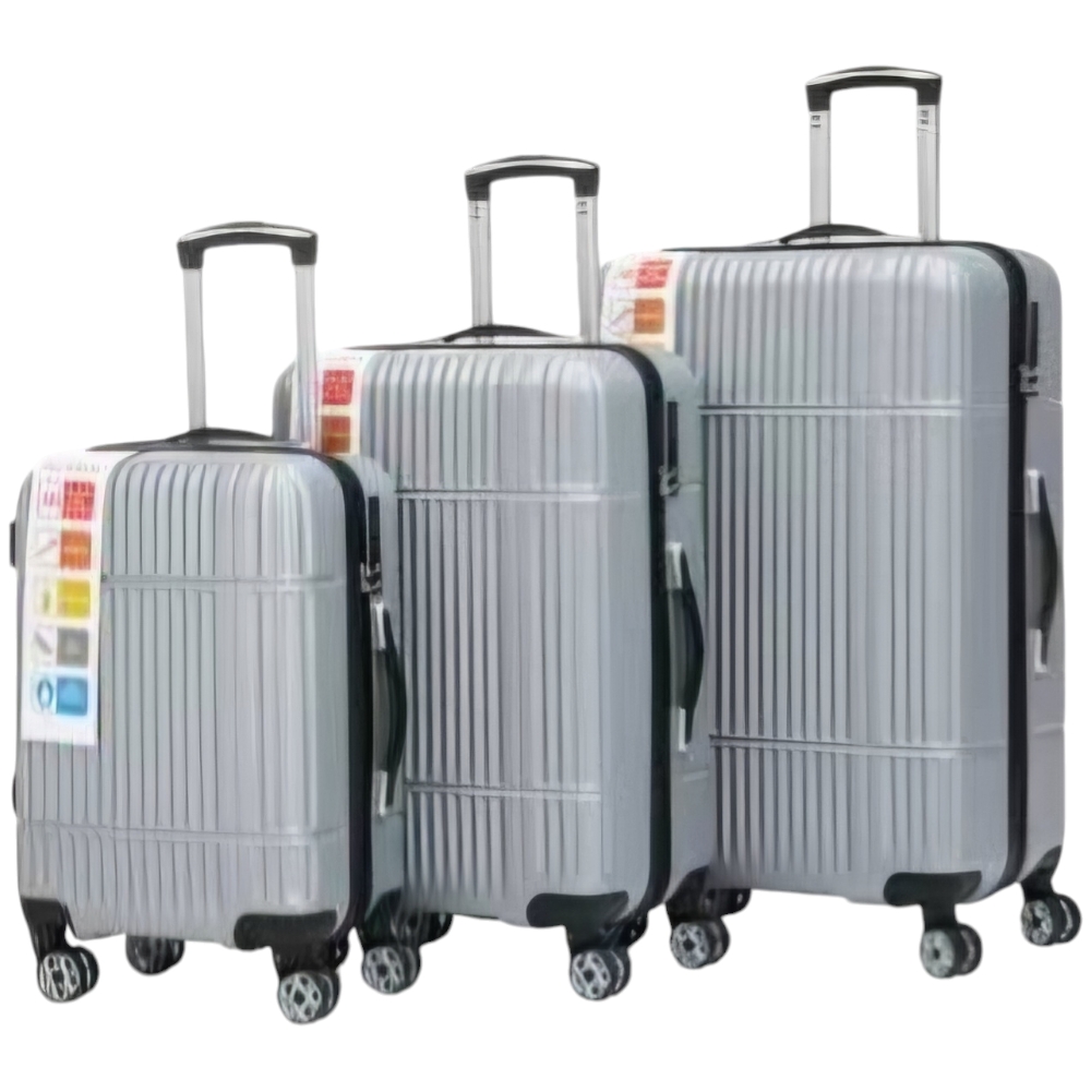 Set di 3 valigie argento con struttura rigida trolley valigie bagaglio a mano