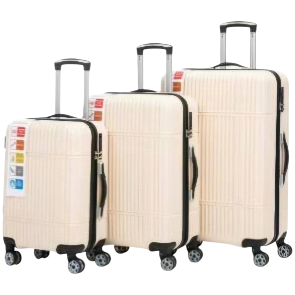 Set di 3 valigie beige panna con struttura rigida trolley valigie bagaglio a mano