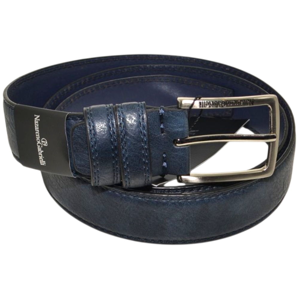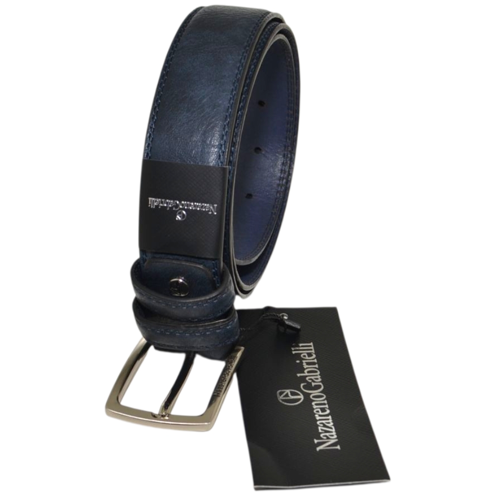 Cintura uomo vera pelle blu opaco con doppia cucitura fibbia in metallo cintura regolabile linea cerimonia.