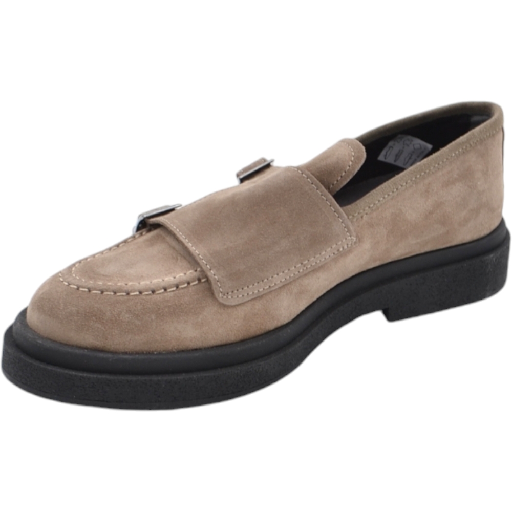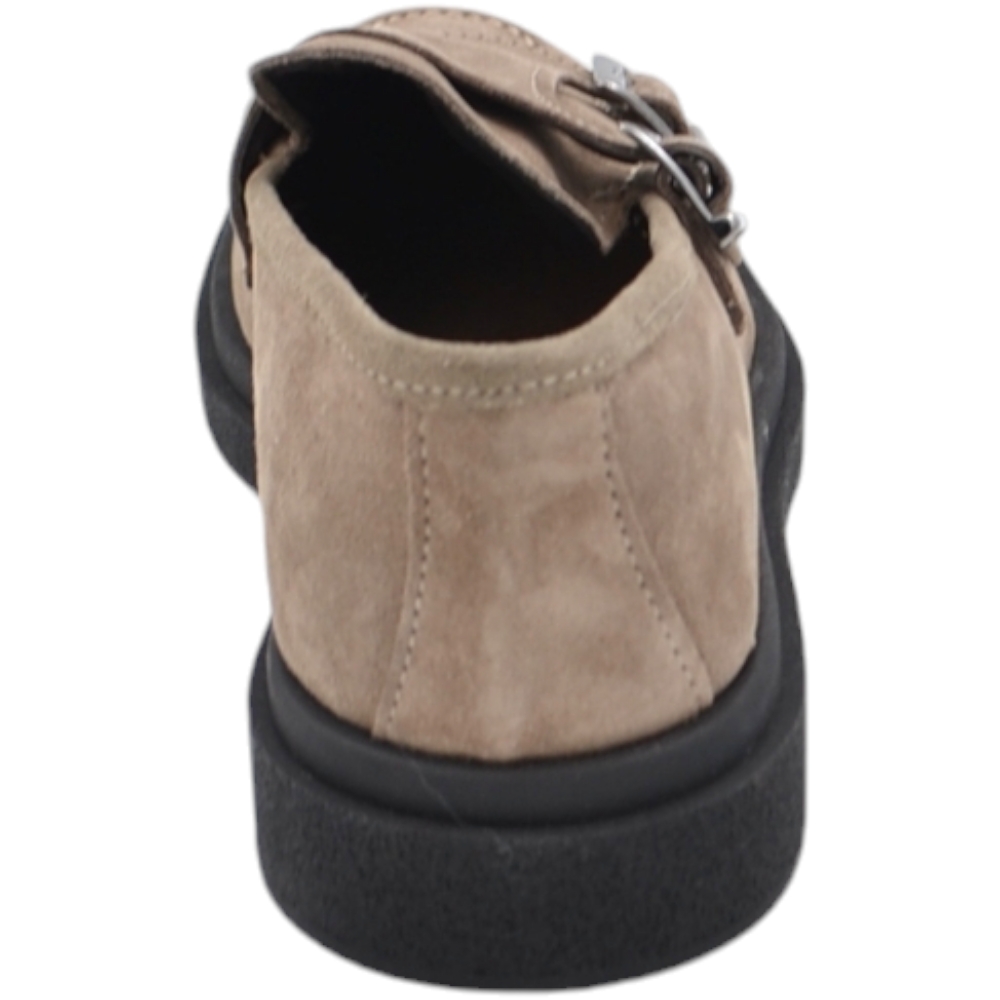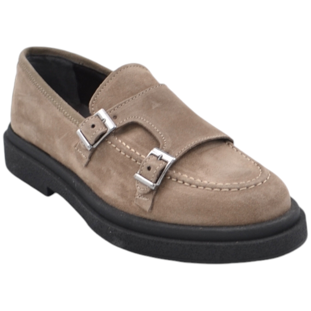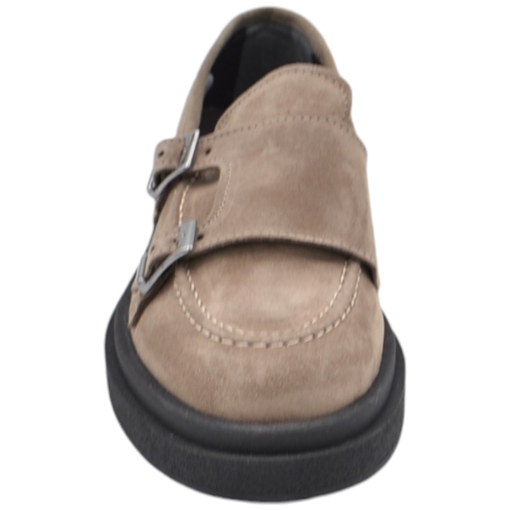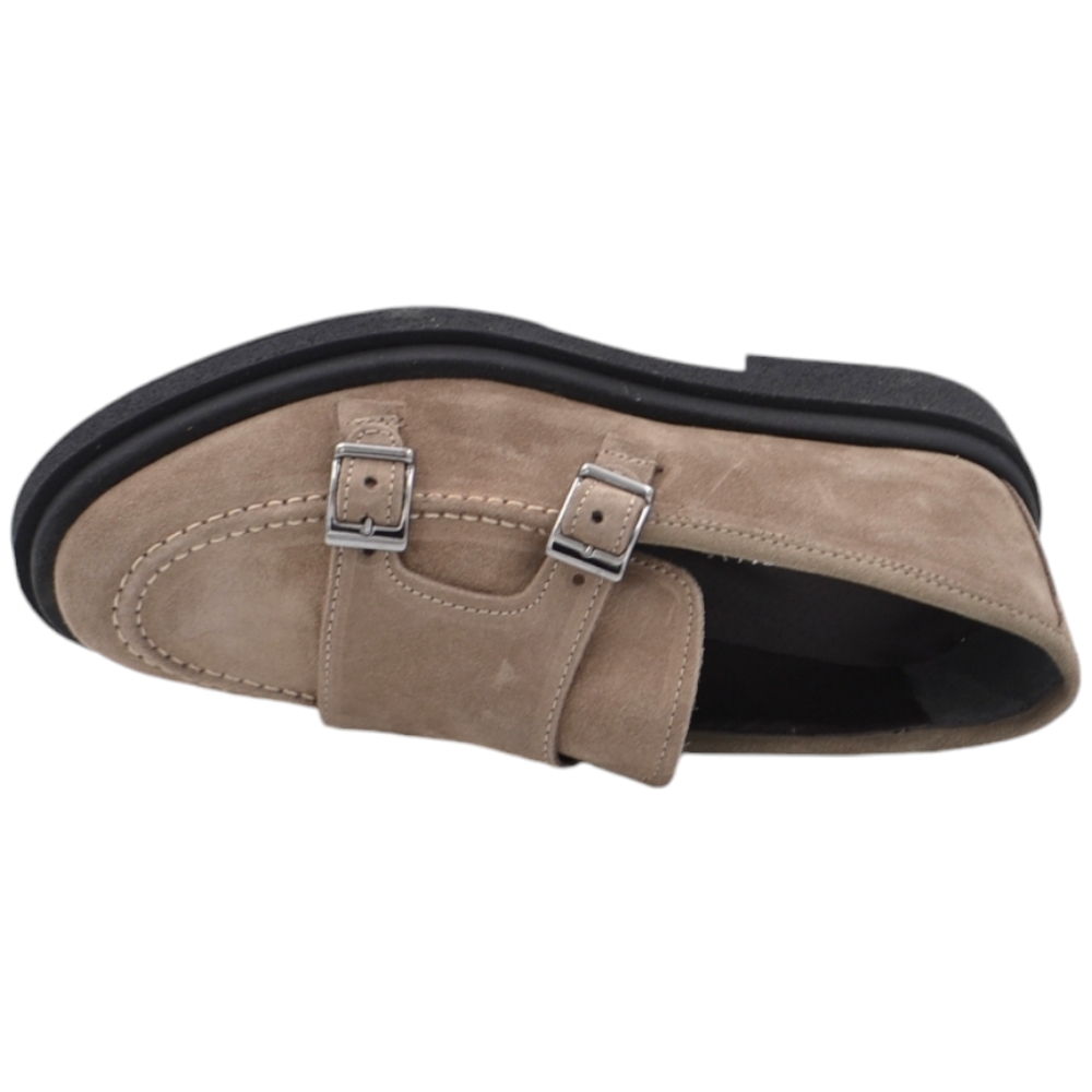 Scarpe uomo mocassino fibbia doppia beige in vera pelle scamosciata business fondo gomma liscio alto 2,5 cm
