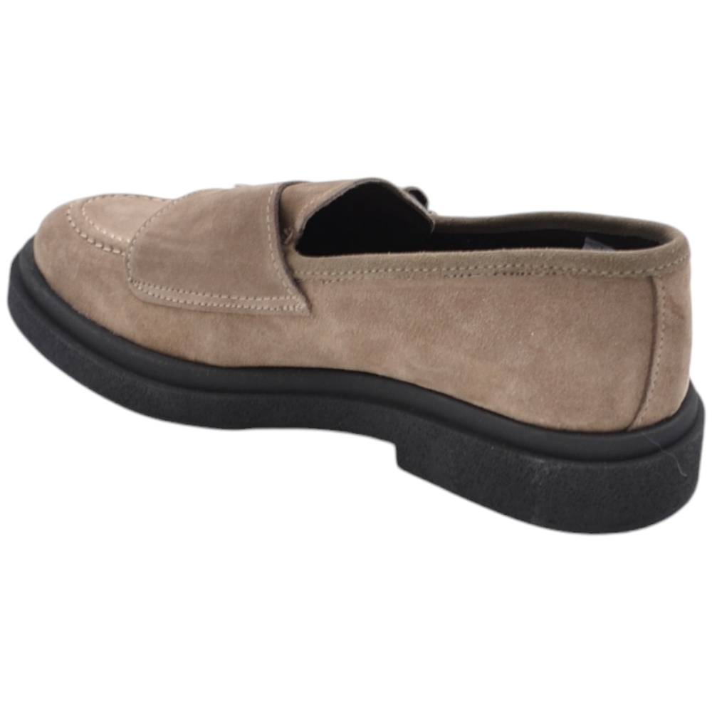 Scarpe mocassino uomo elegante morsetto argento vera pelle scamosciato beige suola cuoio antiscivolo cerimonia evento	.
