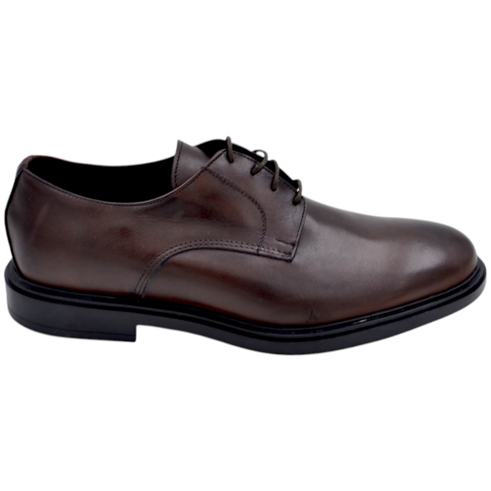 Scarpa stringata uomo liscia marrone in vera pelle abrasiva fondo sottile gomma antiscivolo lacci cerati comoda elegante