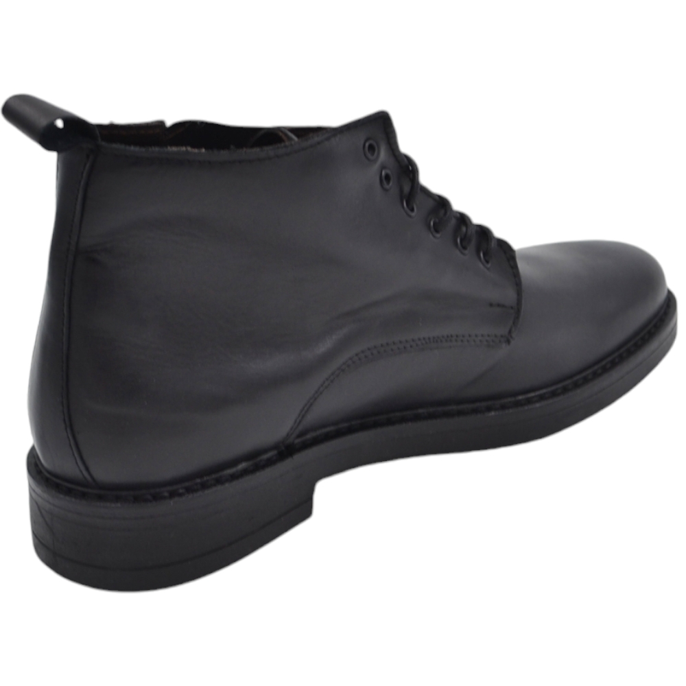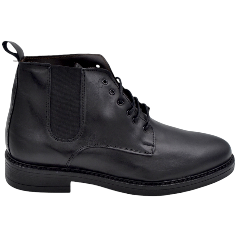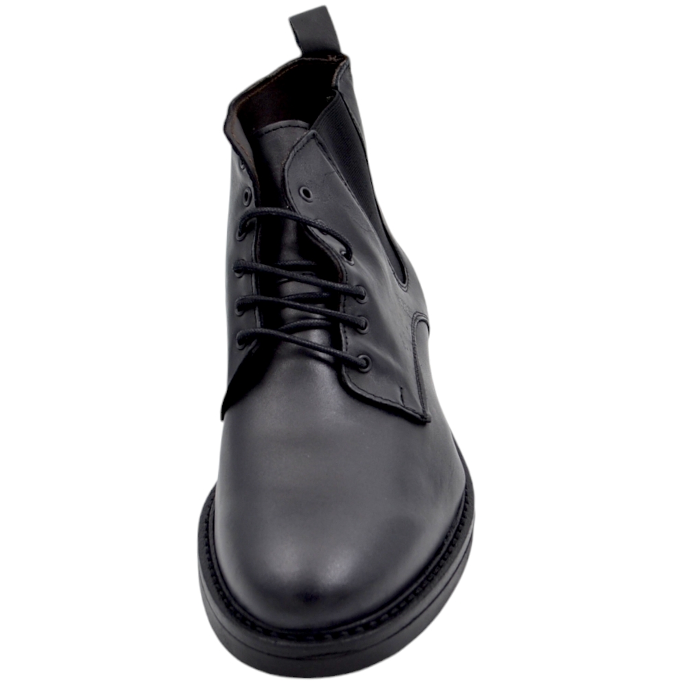 Scarpe stivale polacchino uomo anfibio lacci vera pelle nappa nera suola gomma zip elastico laterale calzata facilitata