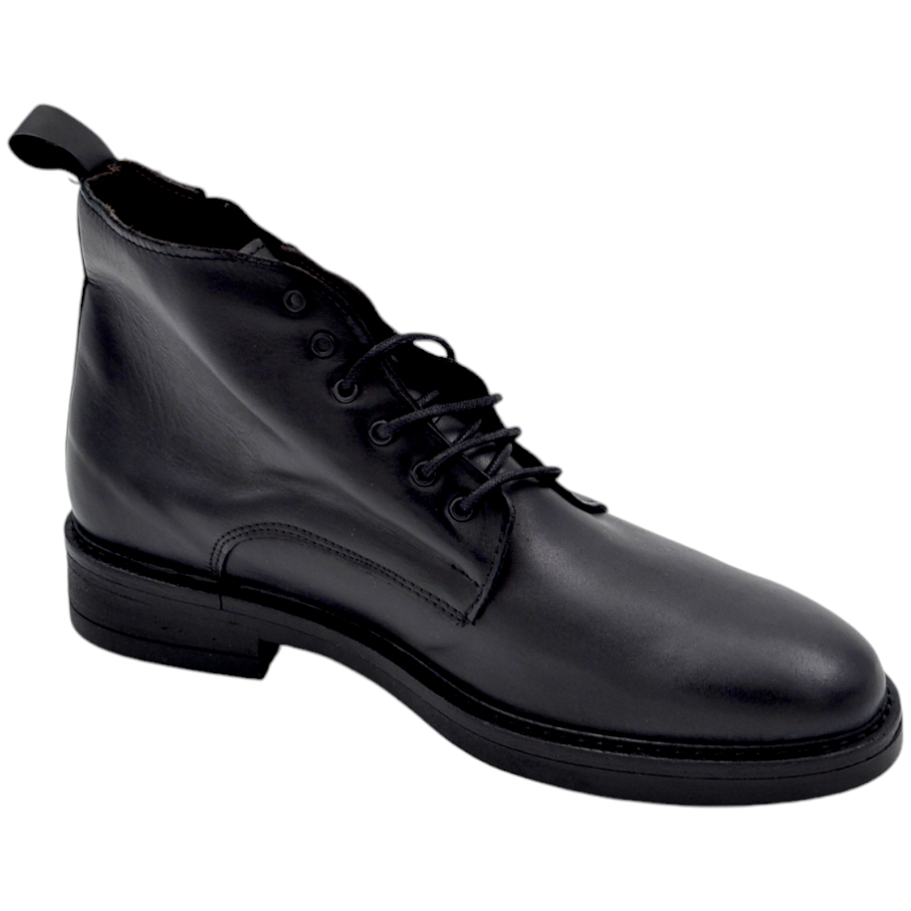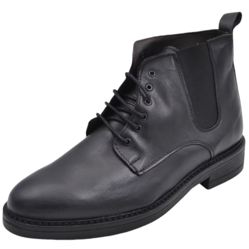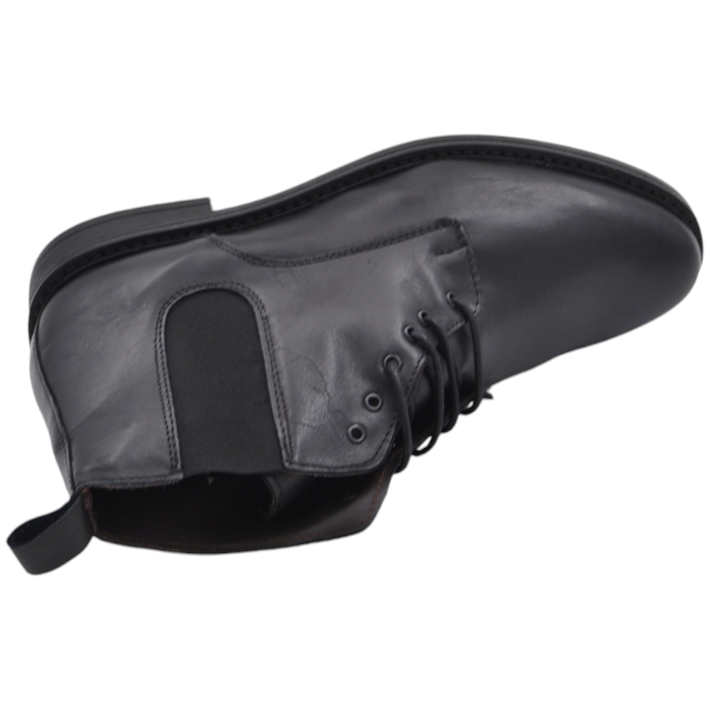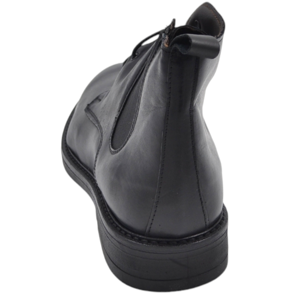 Scarpe stivale polacchino uomo anfibio lacci vera pelle nappa nera suola gomma zip elastico laterale calzata facilitata
