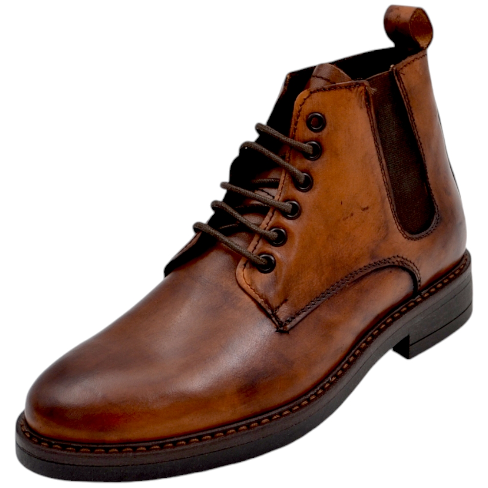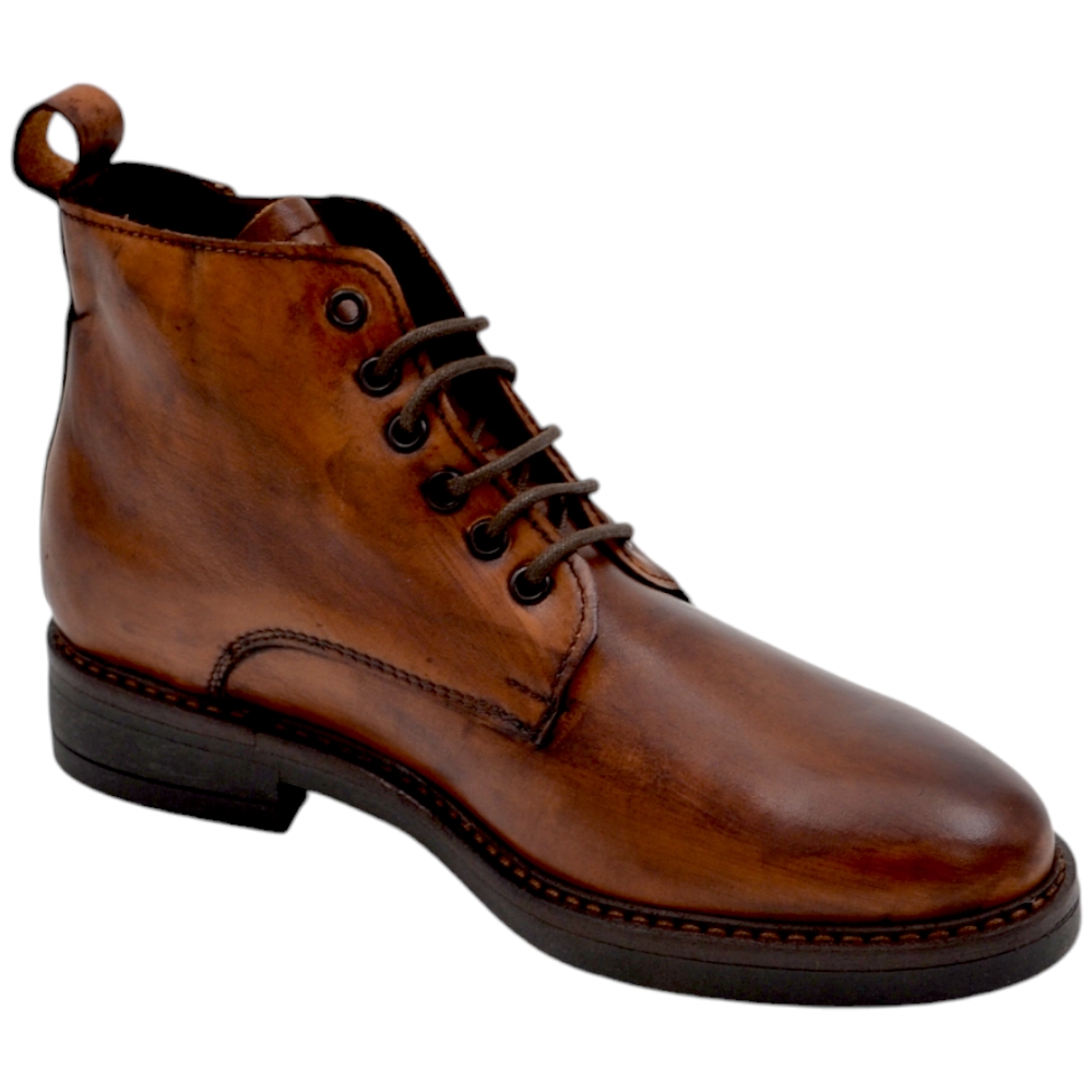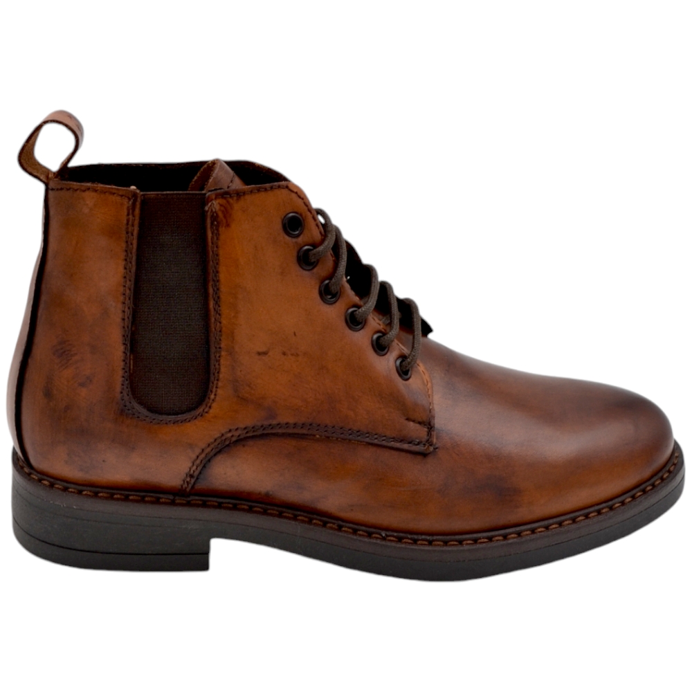 Scarpe stivale polacchino uomo anfibio lacci vera pelle nappa cuoio suola gomma elastico laterale calzata facilitata