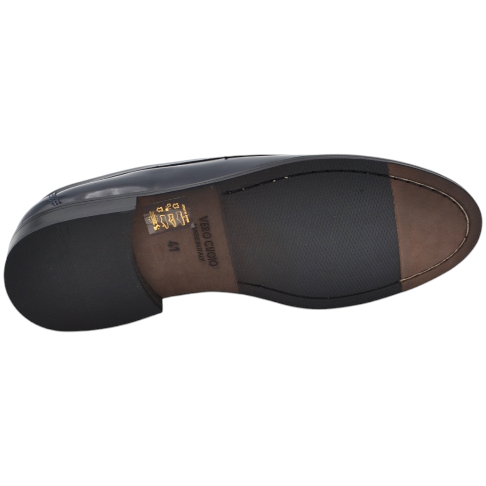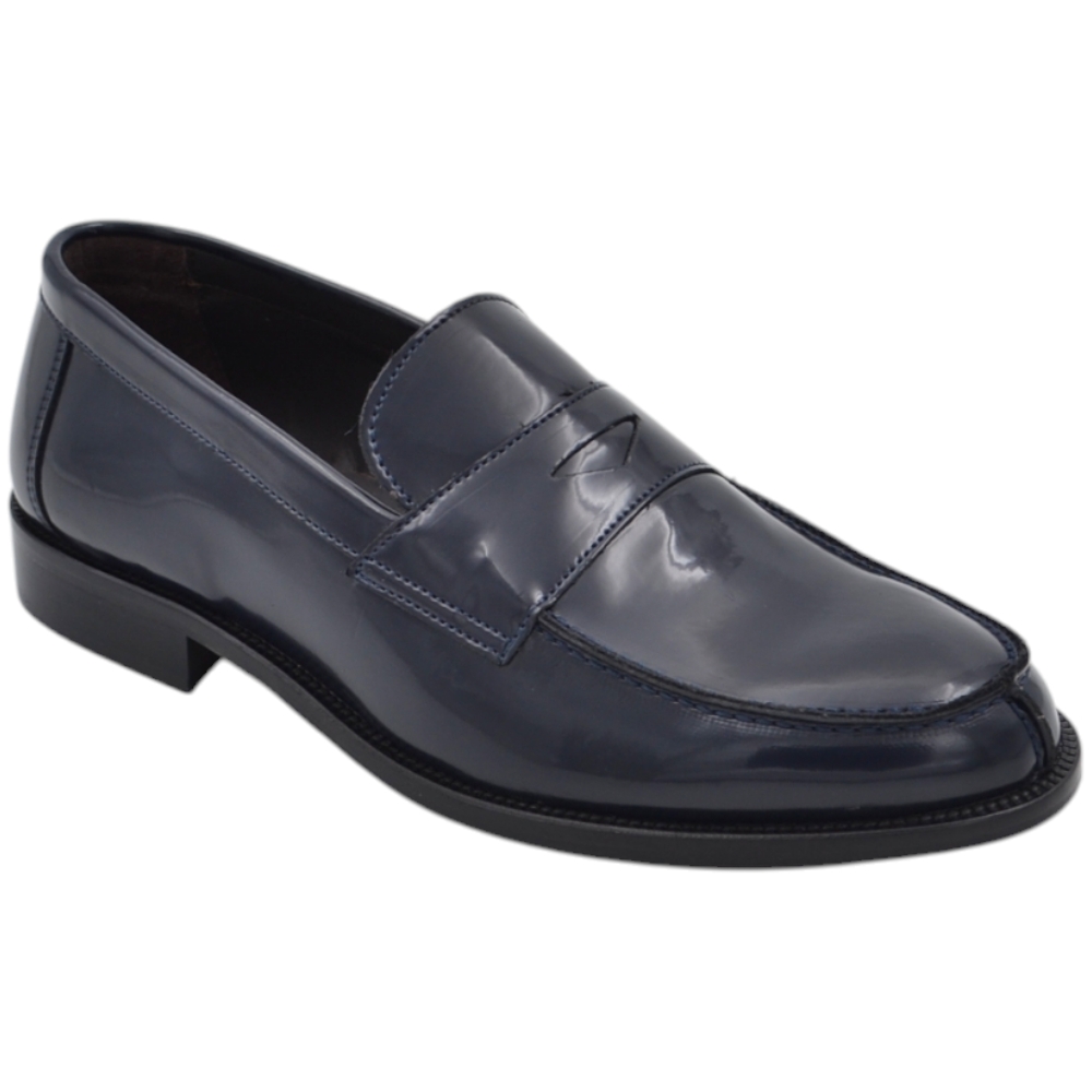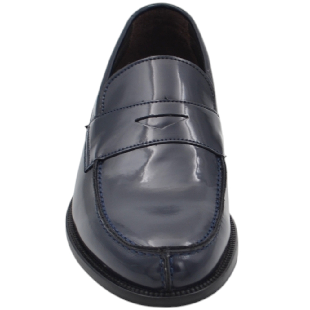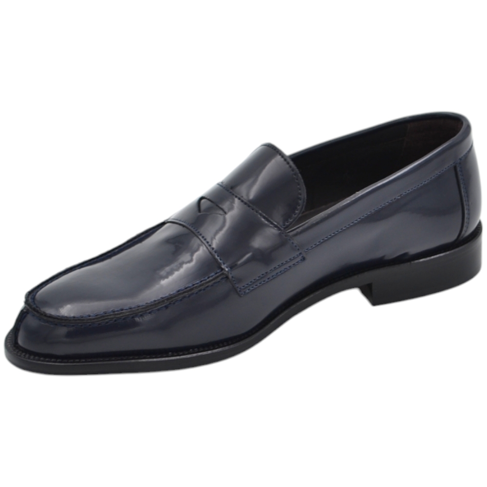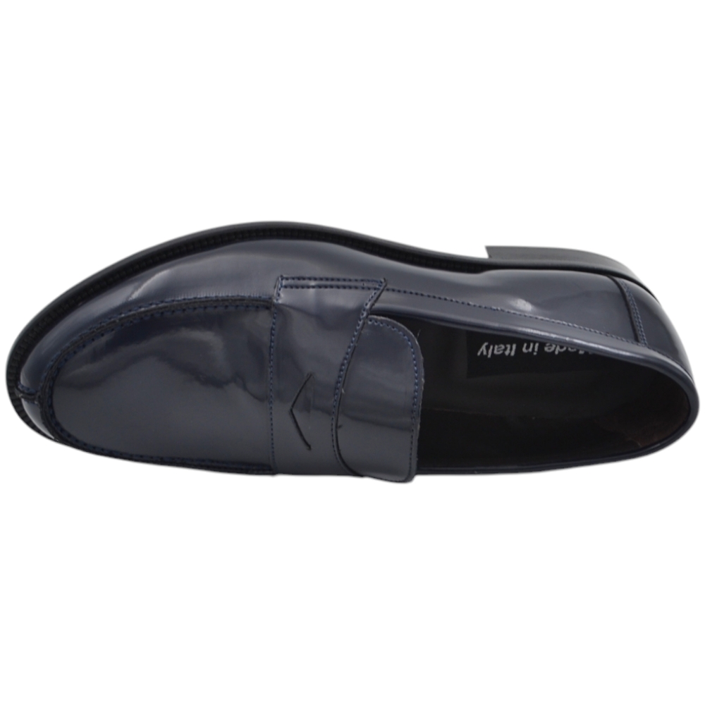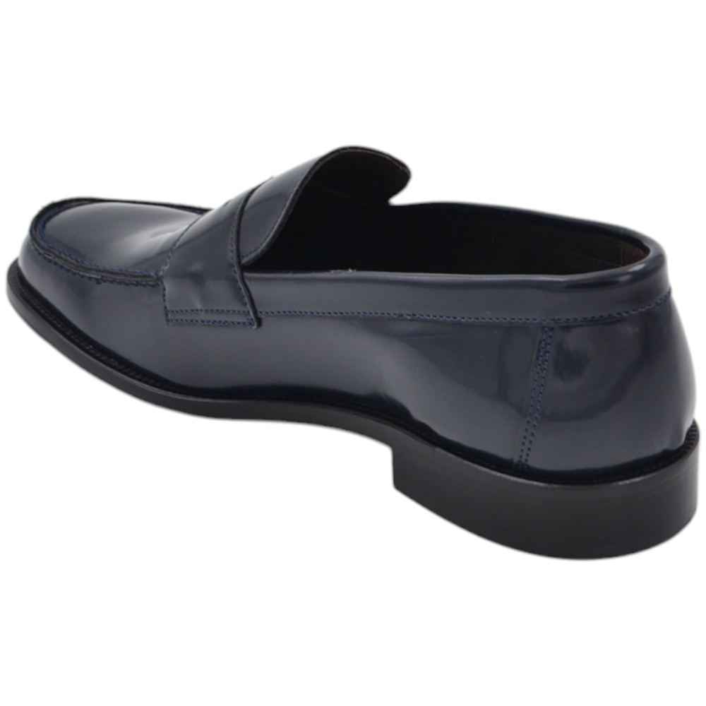 Mocassino uomo college in vera pelle abrasivata blu con bendina fatte a mano fondo cuoio con antiscivolo made in italy