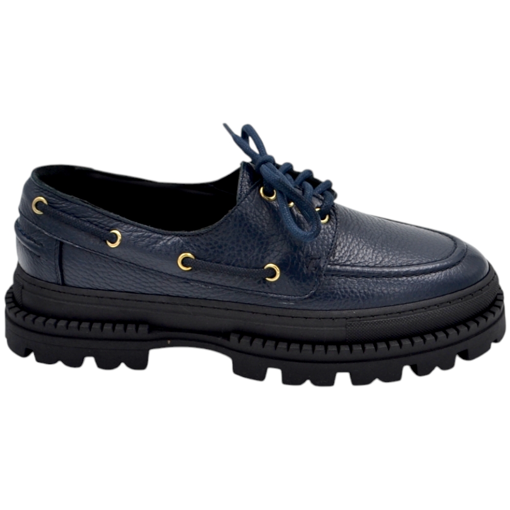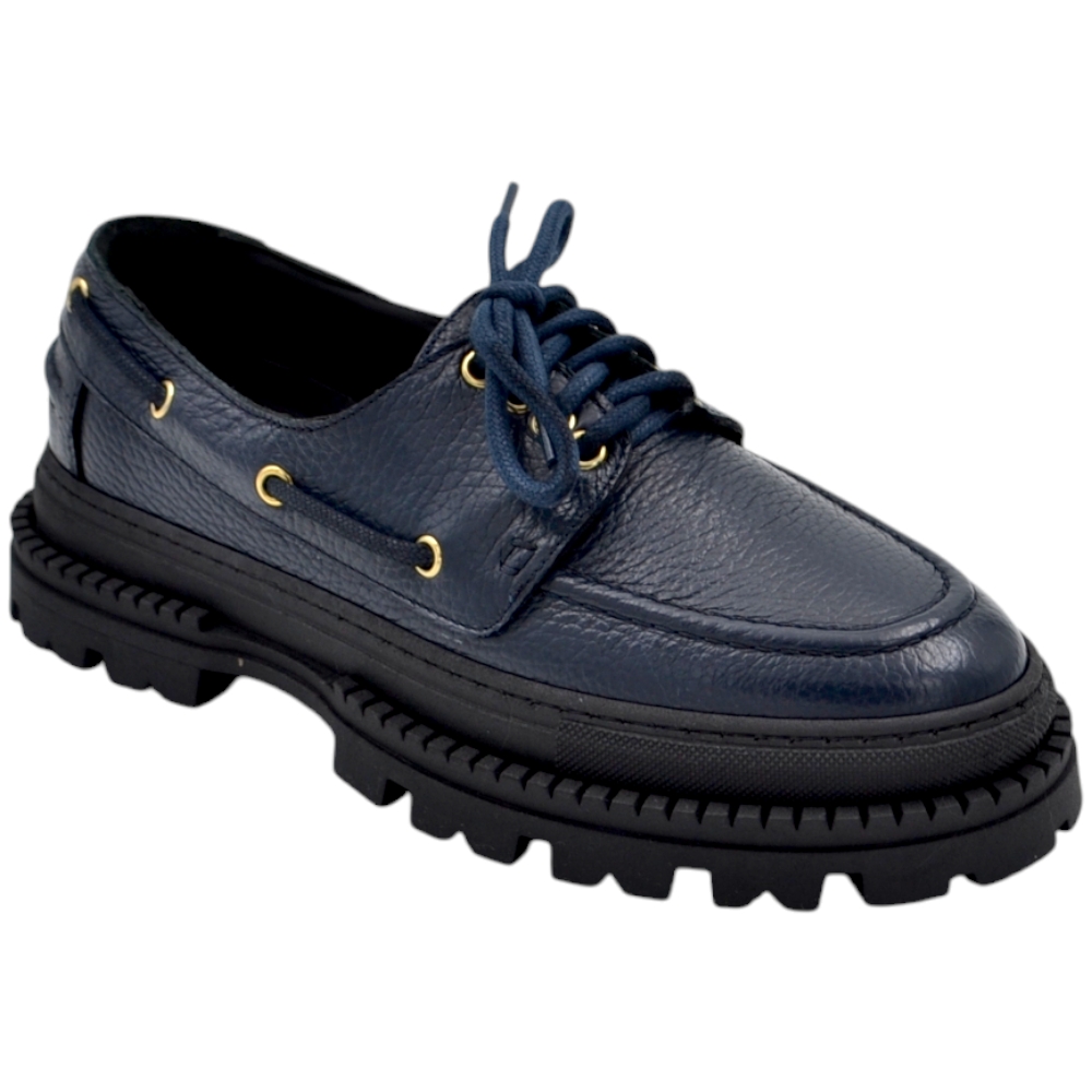 Scarpa mocassino barca ls luisantiago limited in vera pelle di nappa blu bottolato con suola exclusive combat alta