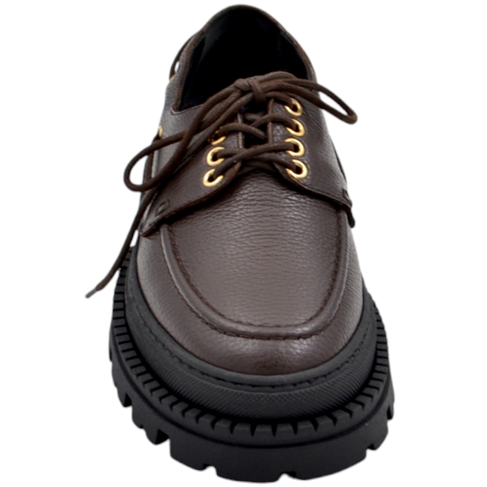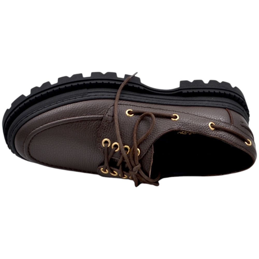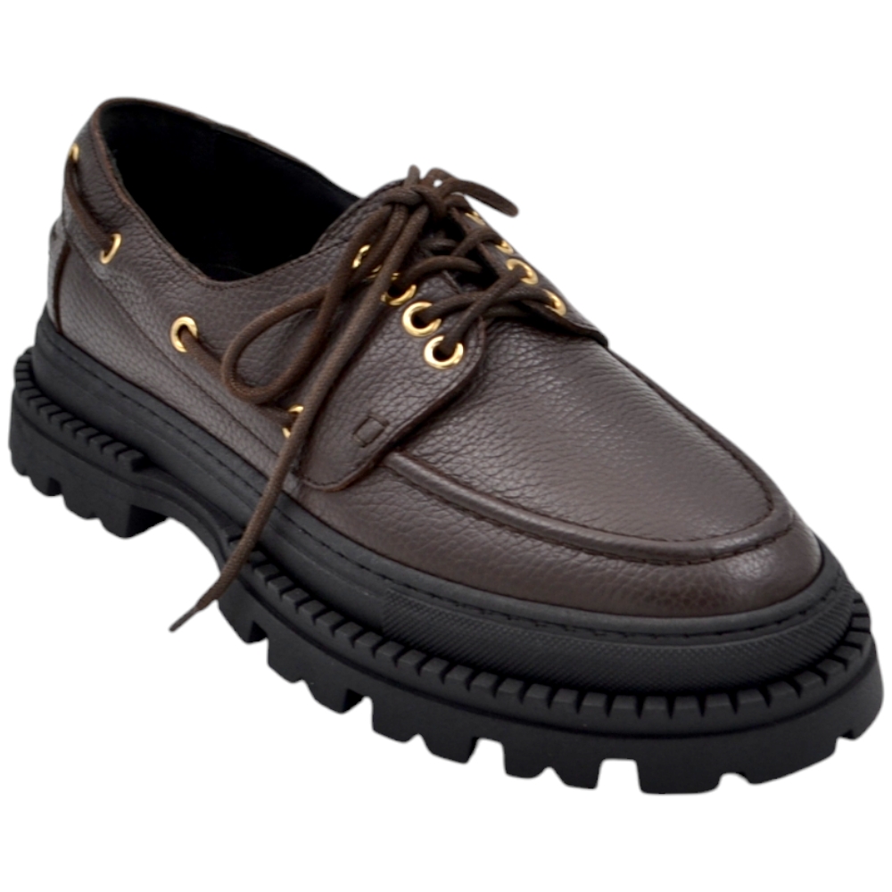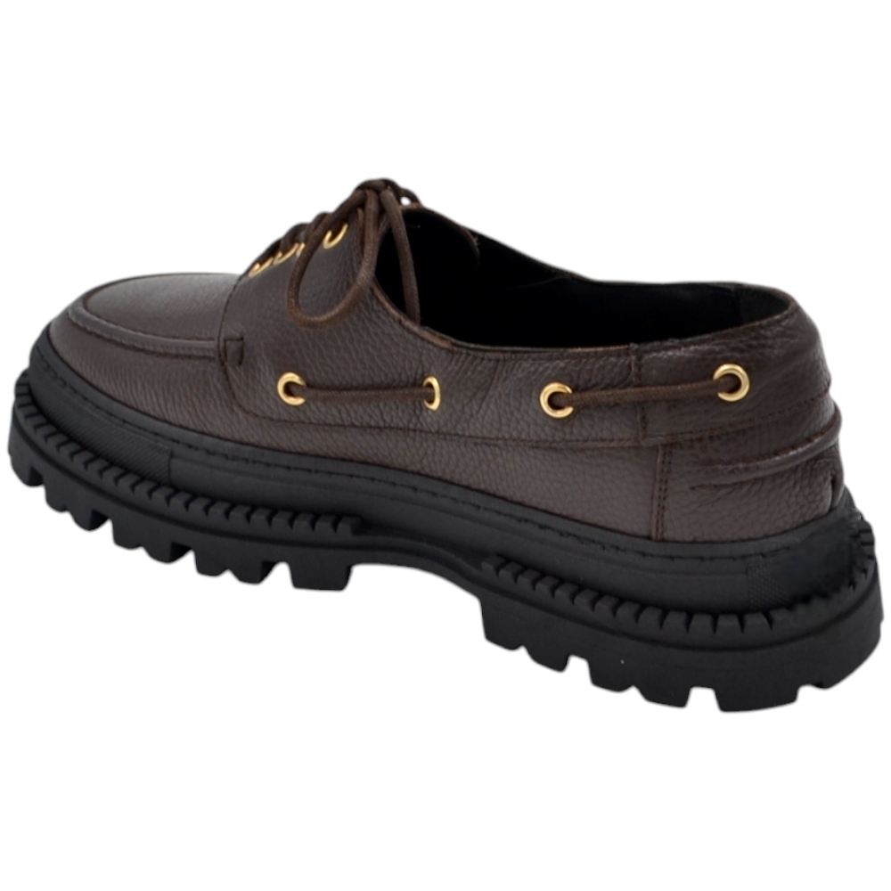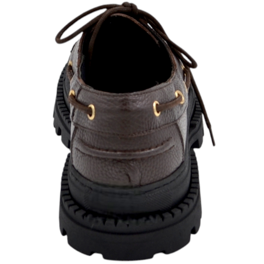 Scarpa mocassino barca LS Luisantiago limited in vera pelle di nappa marrone bottolato con suola exclusive combat alta