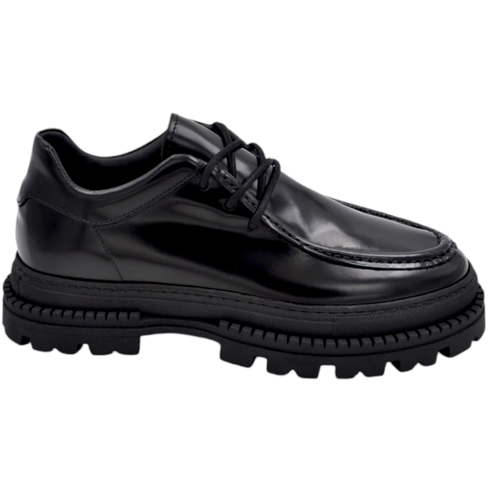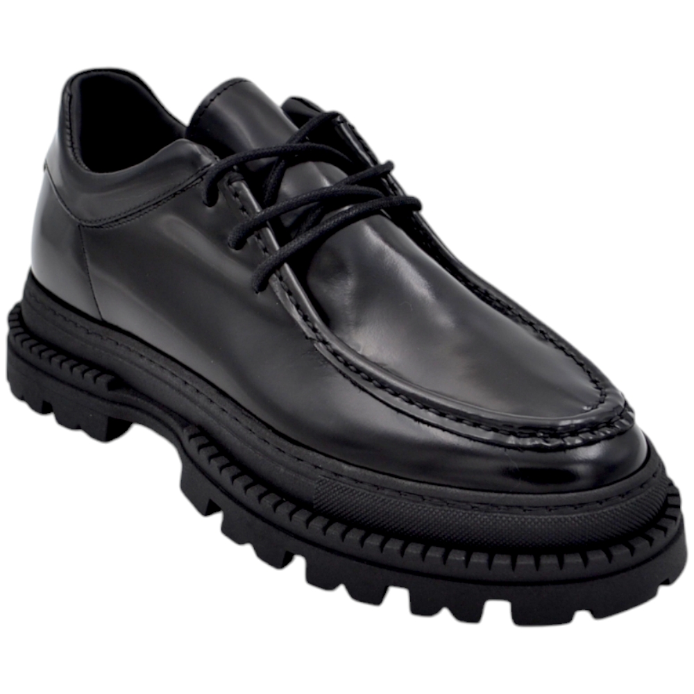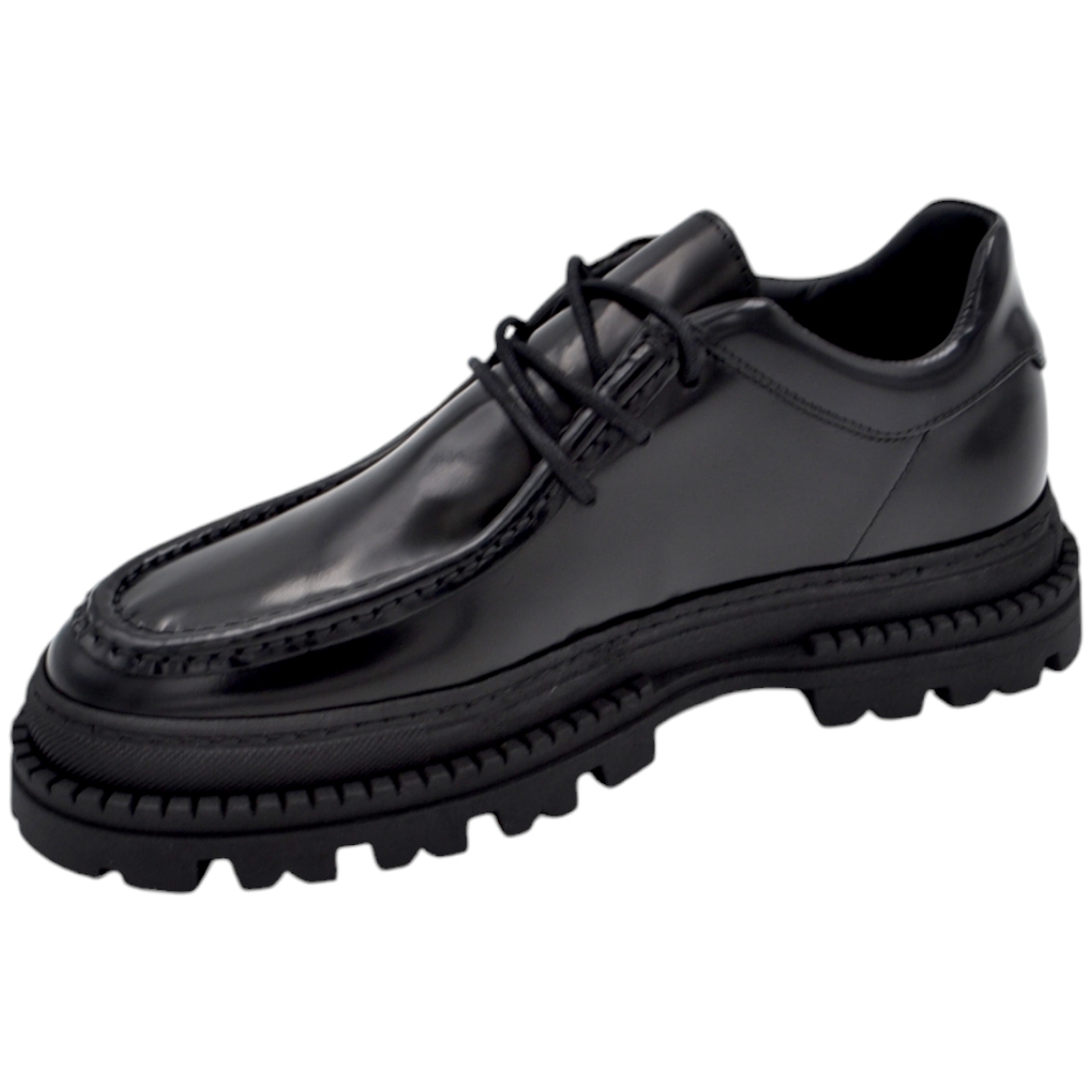 Scarpa mocassino ingegniere ls luisantiago limited vera pelle abrasivato nero spazzolato con suola exclusive combat alta