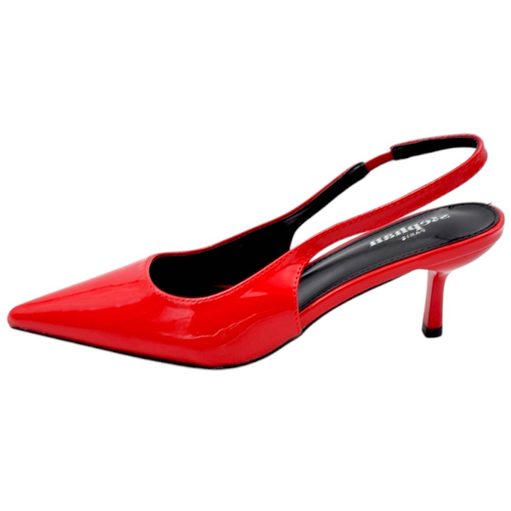 Decolette' donna in pelle lucida rossa punta tacco kitten 3 cm cinturino fisso tallone linea basic