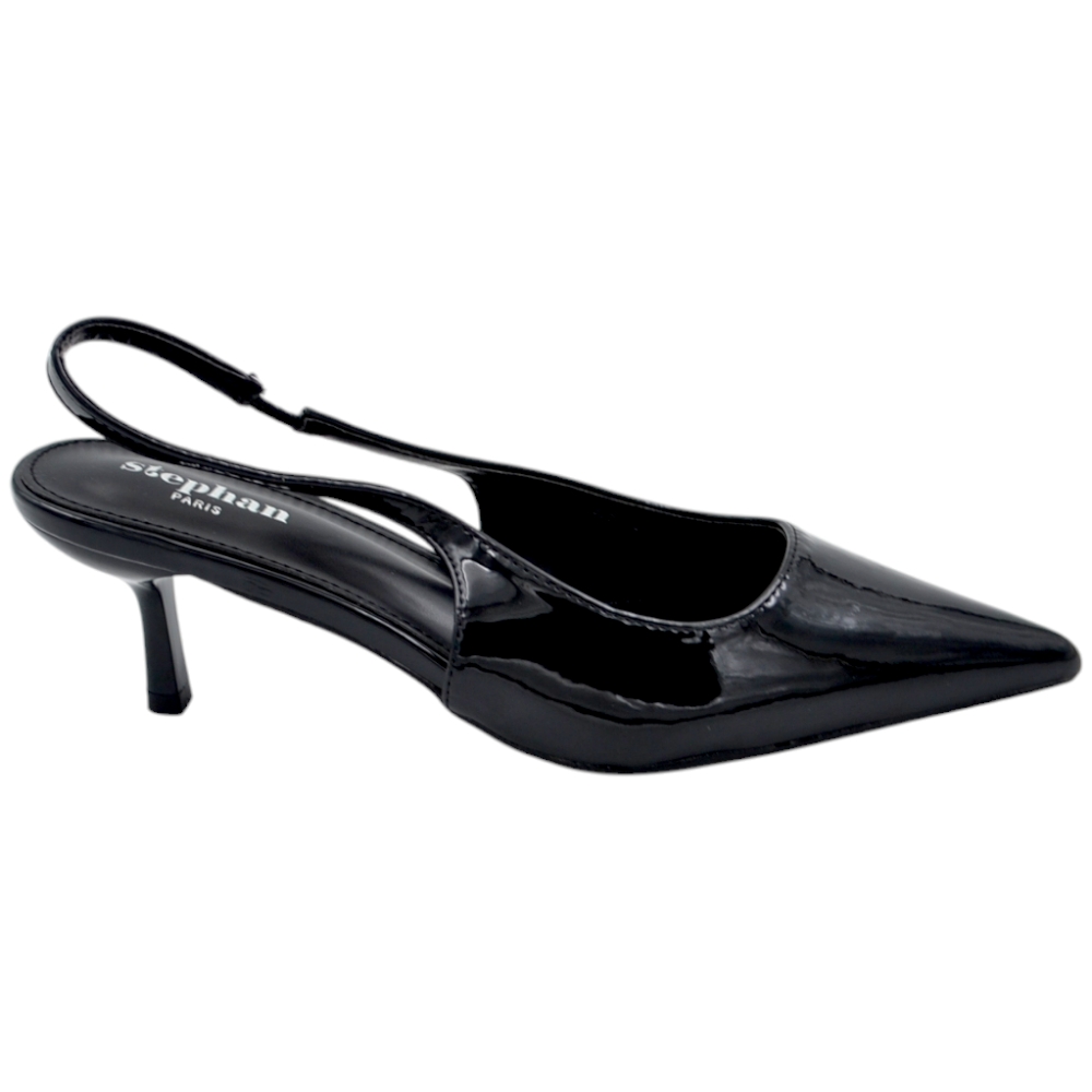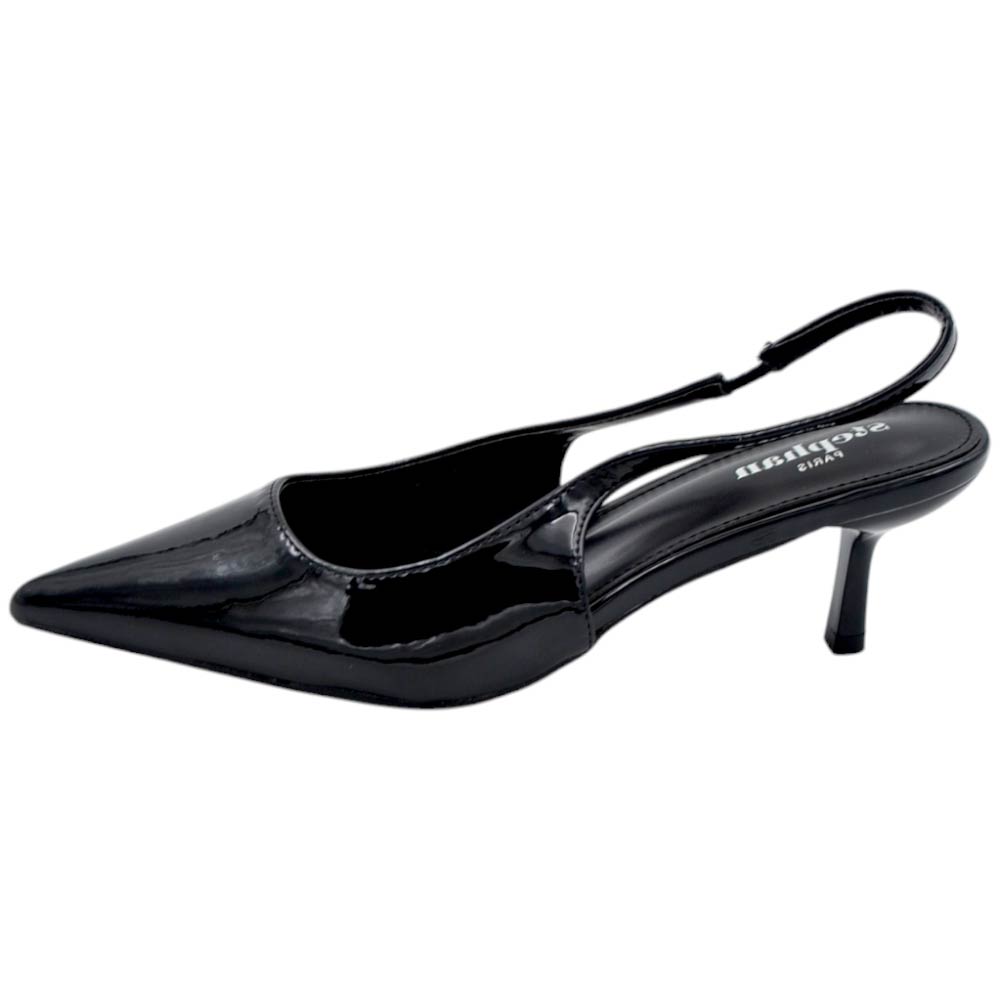 Decolette' donna in pelle lucida nero punta tacco kitten 3 cm cinturino fisso tallone linea basic