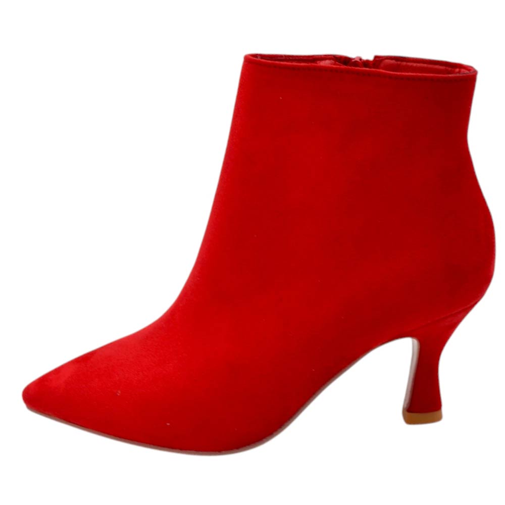 Scarpe stivaletto donna pelle scamosciata rossa basso alla caviglia tacco spillo basso 5 cm linea basic con zip interna