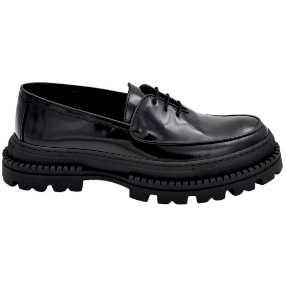 Mocassini uomo slip on classico vera pelle lucida nero striatura vernice fondo vero cuoio antiscivolo cerimonia dandy.