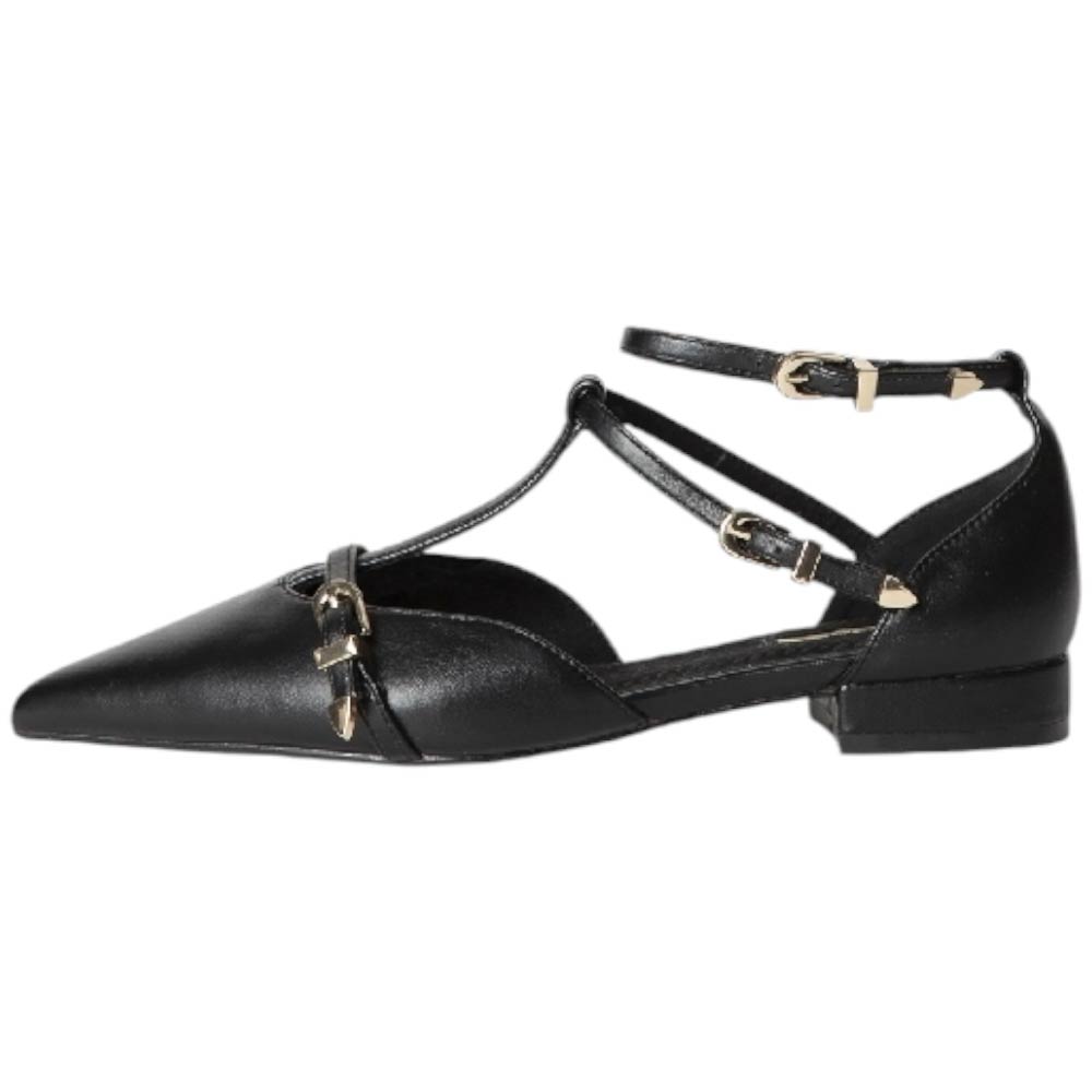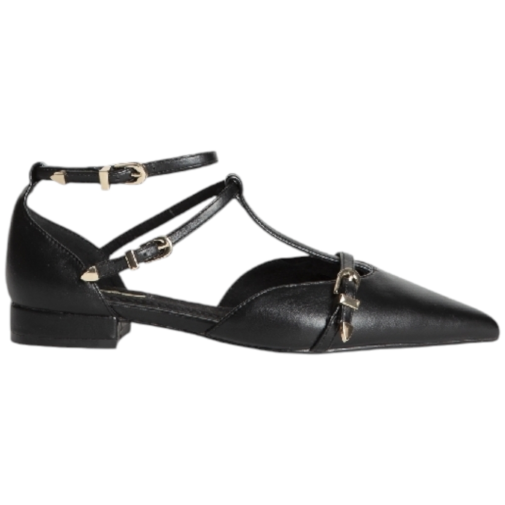 Scarpe ballerine donna nero a punta lucida con cinturini raso terra moda comfort fondo antiscivolo.