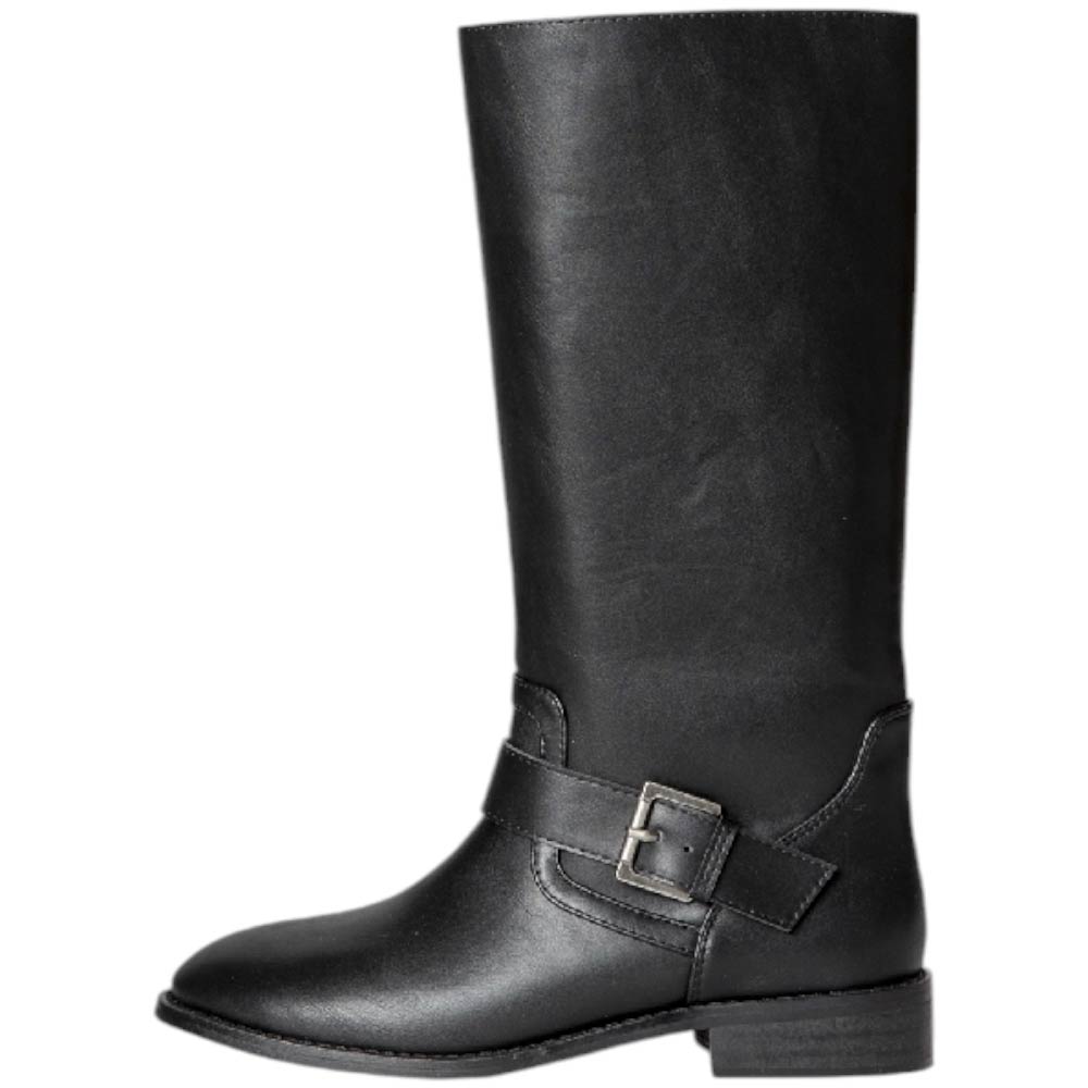 Stivali Corina Biker in pelle nero morbido liscio punta tonda fibbia argento tacco 2,5 cm