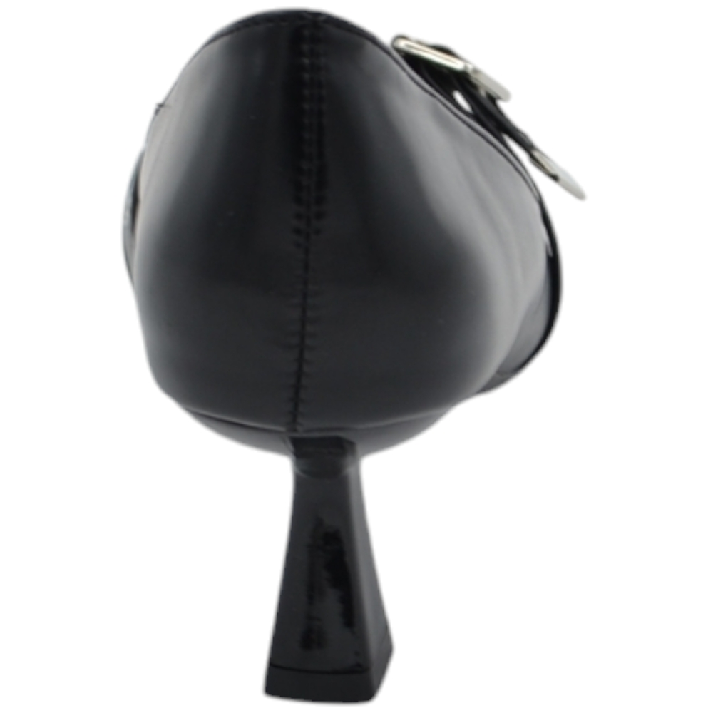 Decolette' donna in pelle lucida nera punta tacco clessidra 8 cm cinturino regolabile tallone con fibbie e cinturini.