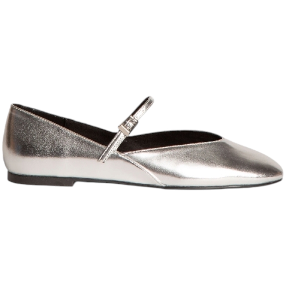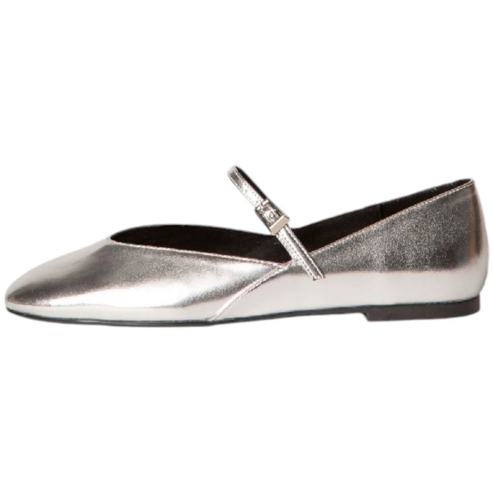 Scarpa ballerina donna Corina M4600 in pelle semilucida argento con punta quadrata e cinturino regolabile fondo sottile