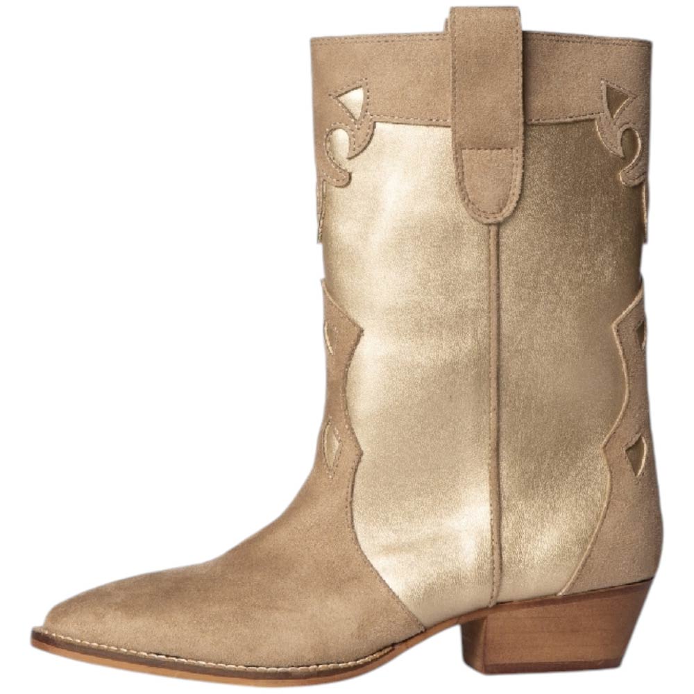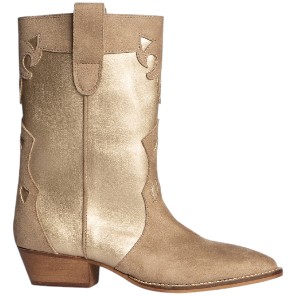 Stivali donna Western Corina M4632 in pelle e camoscio bicolore beige e oro tacco western 6cm zip meta' polpaccio basic