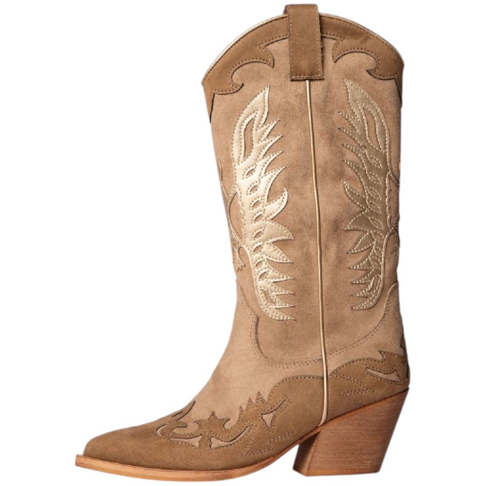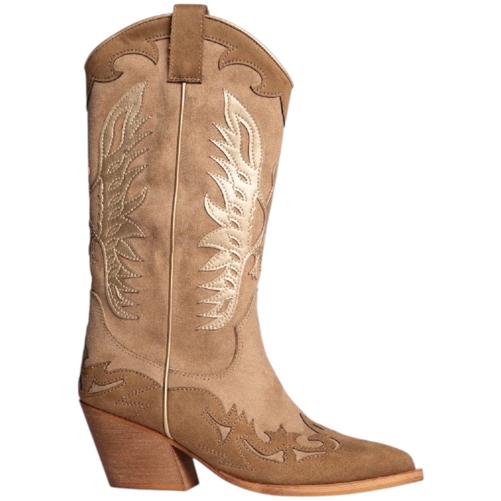 Stivale donna texano Corina lusso multimateriale camoscio beige oro M4800