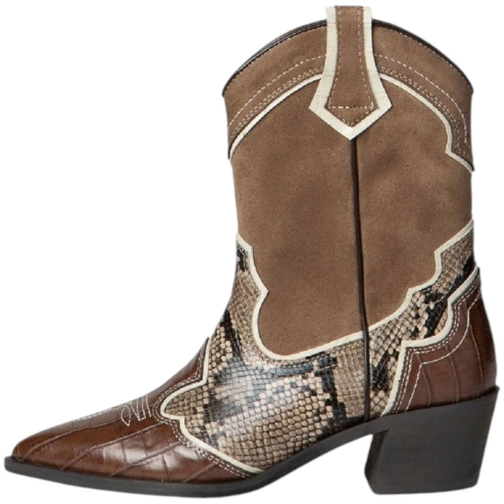 Stivaletto corina m4731 texano multimateriale lusso marrone kakhi animalier
