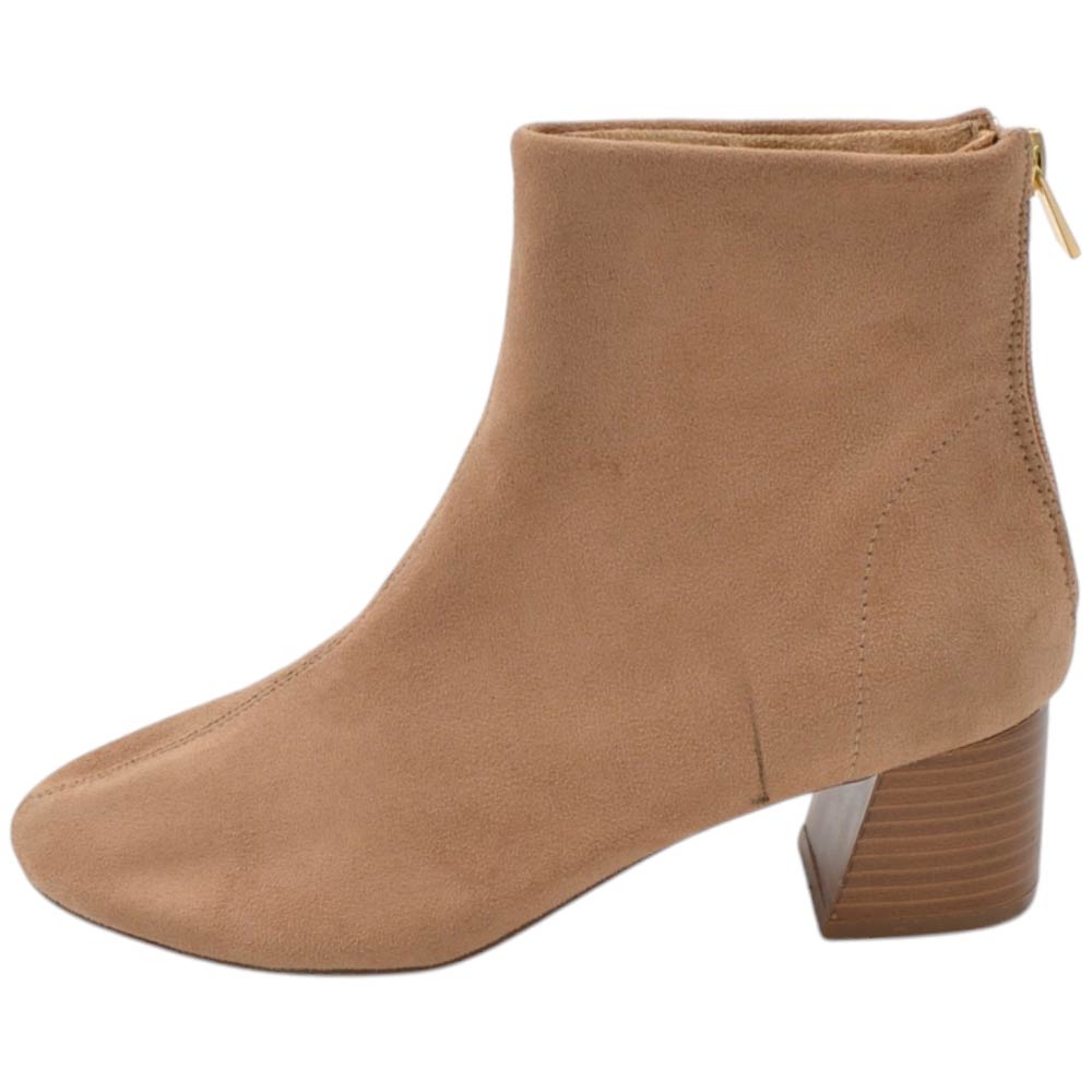 Stivaletto donna Corina M3850 in pelle scamosciata morbida beige con tacco in legno 5 cm zip laterale alla caviglia