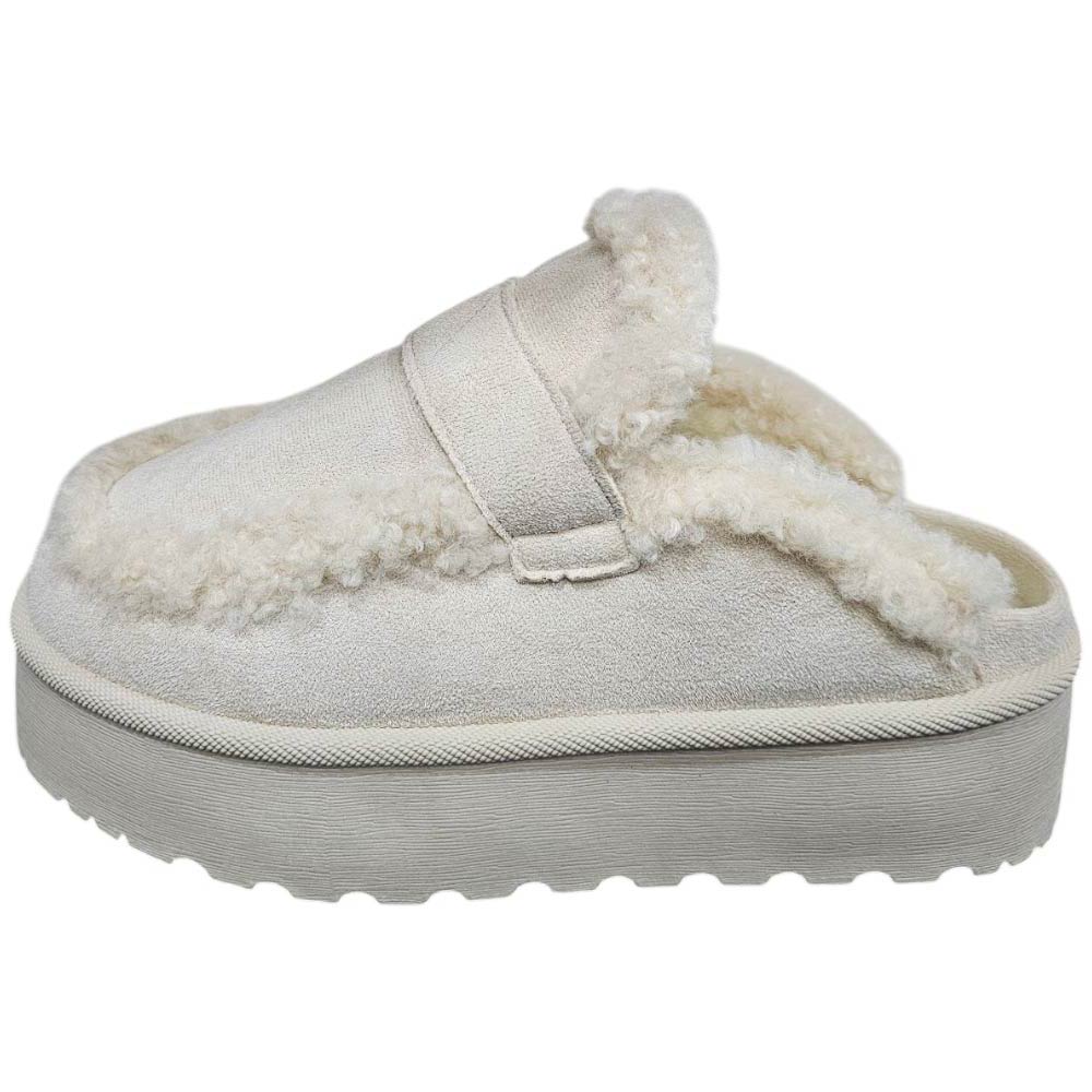 Mocassino pantofola donna platform latte interno pelliccia bianco slingback comoda fondo alto 4,5cm