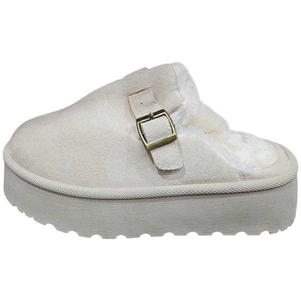 Mocassino pantofola donna platform taupe interno pelliccia bianco slingback comoda fondo alto 4,5cm	.