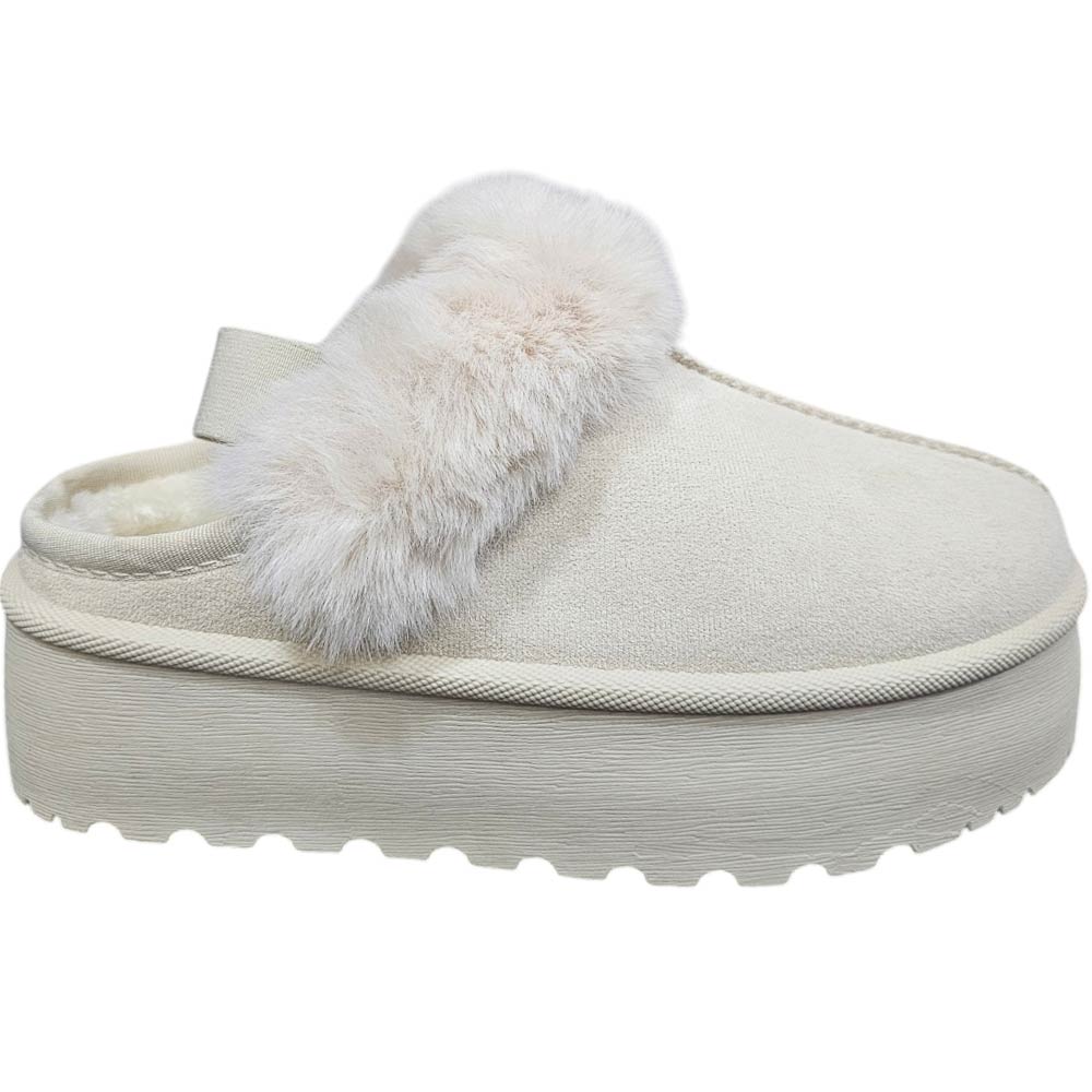 Mocassino pantofola donna platform taupe interno pelliccia bianco slingback comoda fondo alto 4,5cm	.