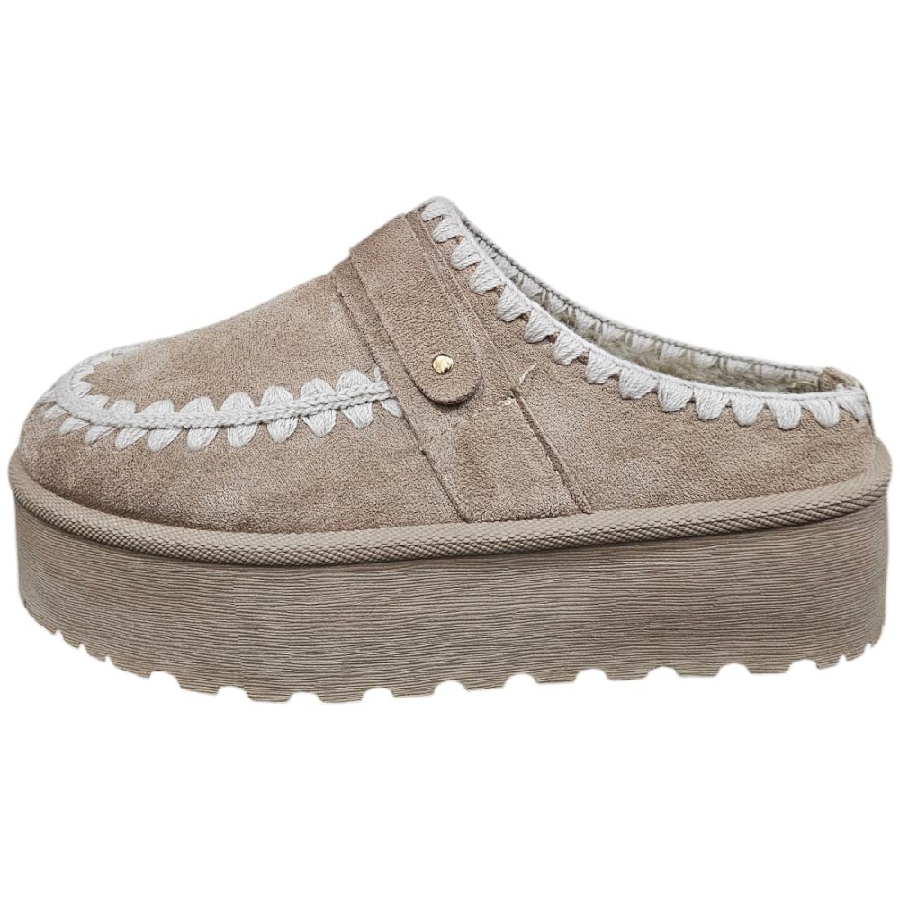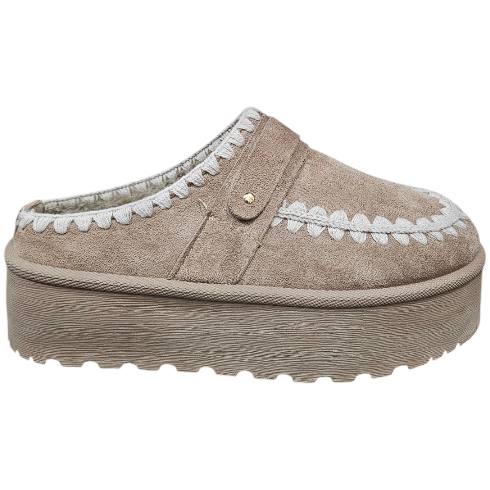 Mocassino pantofola donna platform taupe interno pelliccia bianco slingback comoda fondo alto 4,5cm