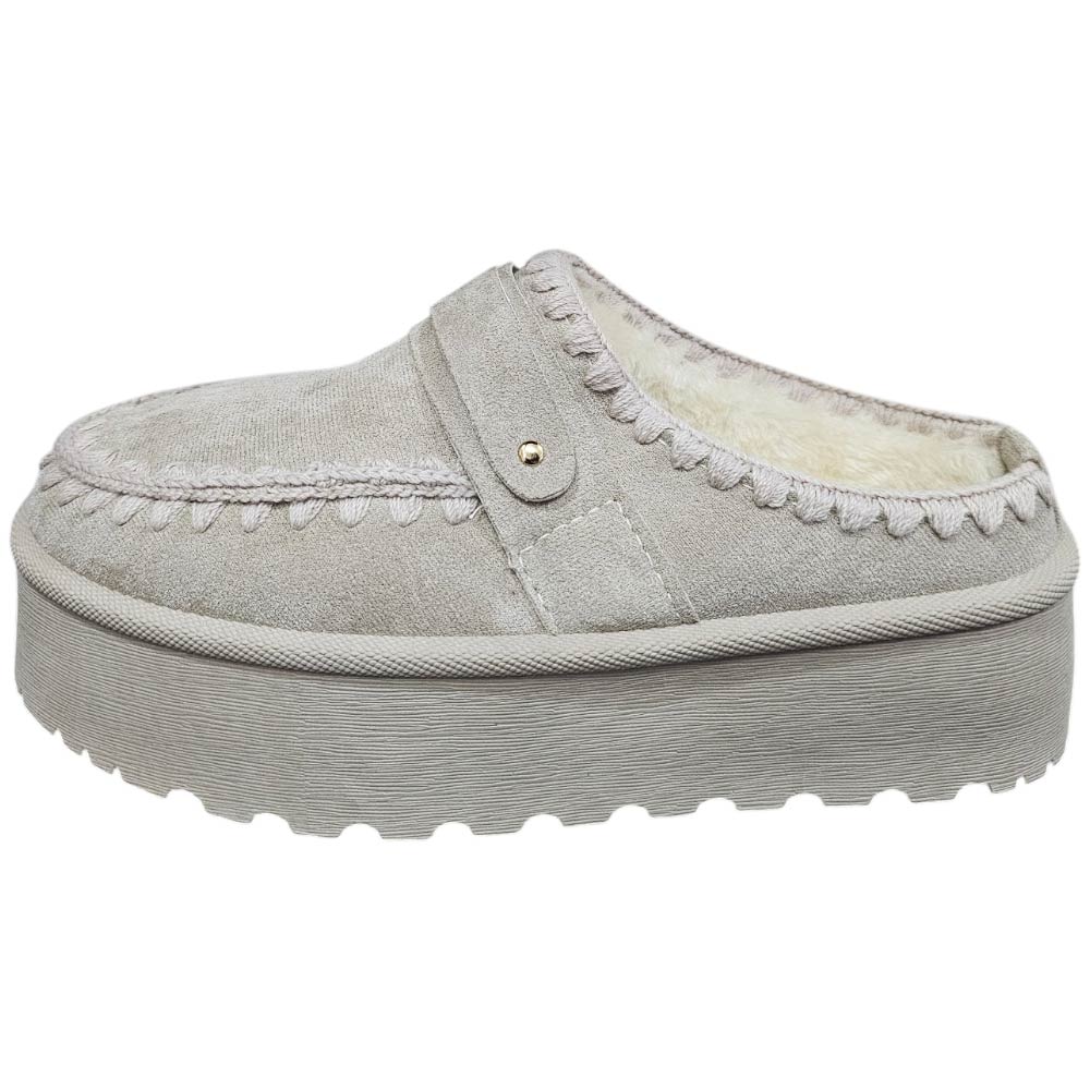 Mocassino pantofola donna platform beige chiaro interno pelliccia bianco slingback comoda fondo alto 4,5cm