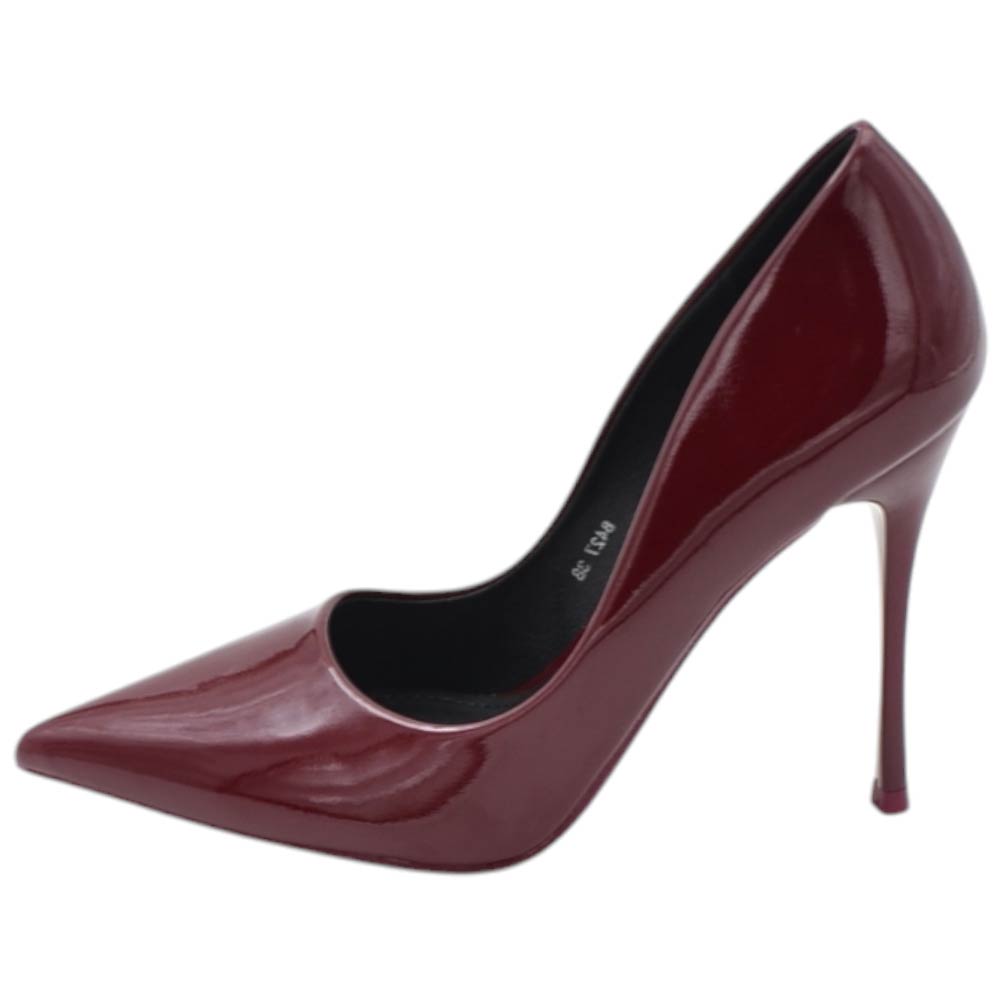 Decolette donna in pelle vernice lucida bordeaux punta tacco sottile 12 cm linea basic