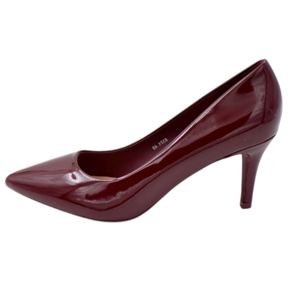 Decolette' donna in pelle vernice lucida bordeaux punta tacco rocchetto 8 cm linea basic