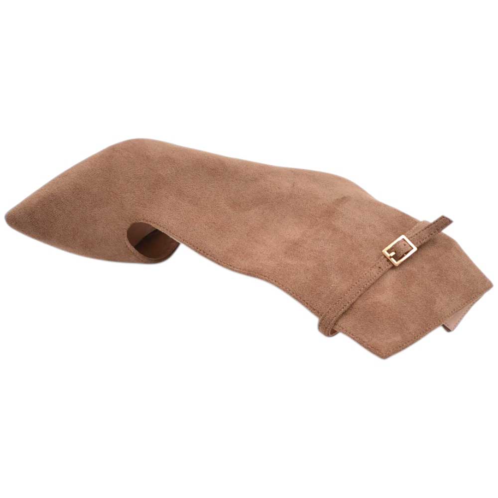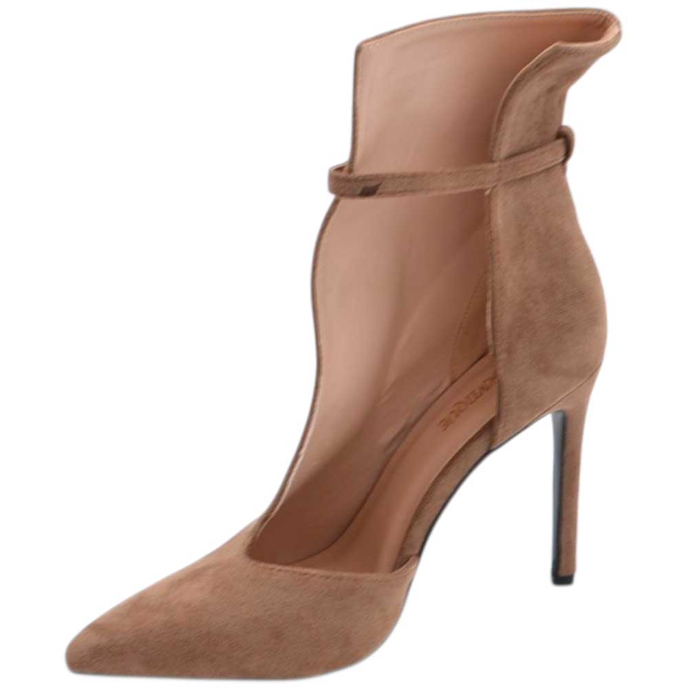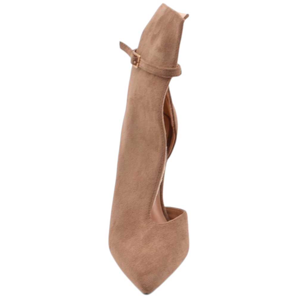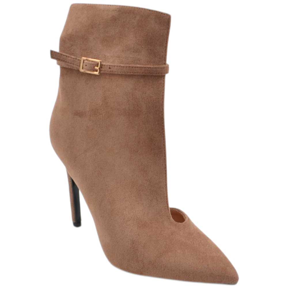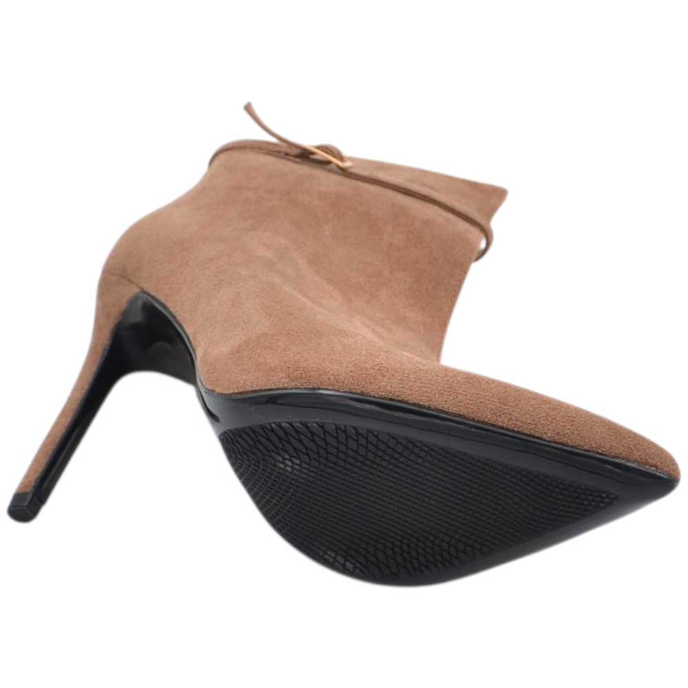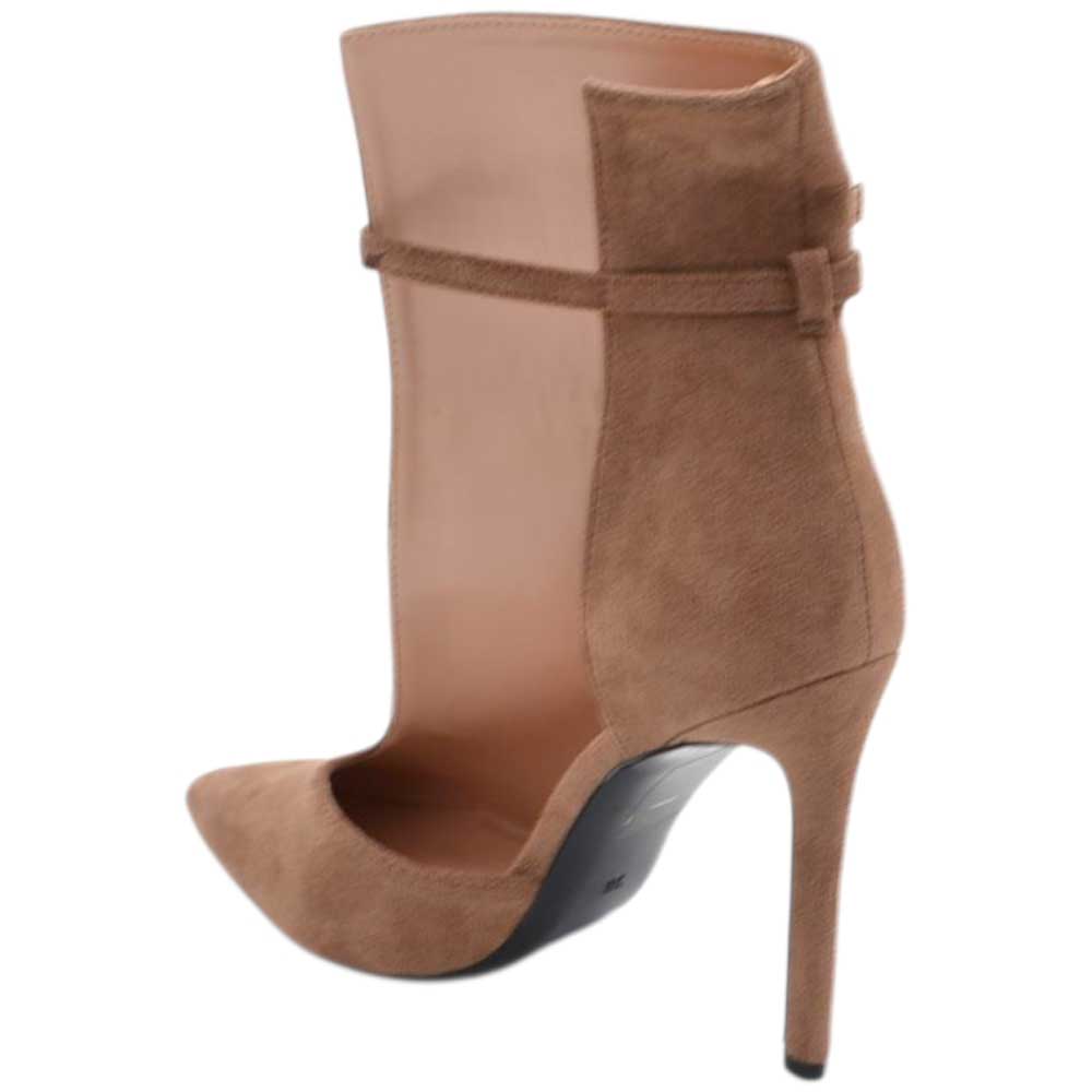 Stivaletto donna tronchetto open cut in camoscio kakhi a punta con tacco a spillo 12 cm e cinturino alla caviglia