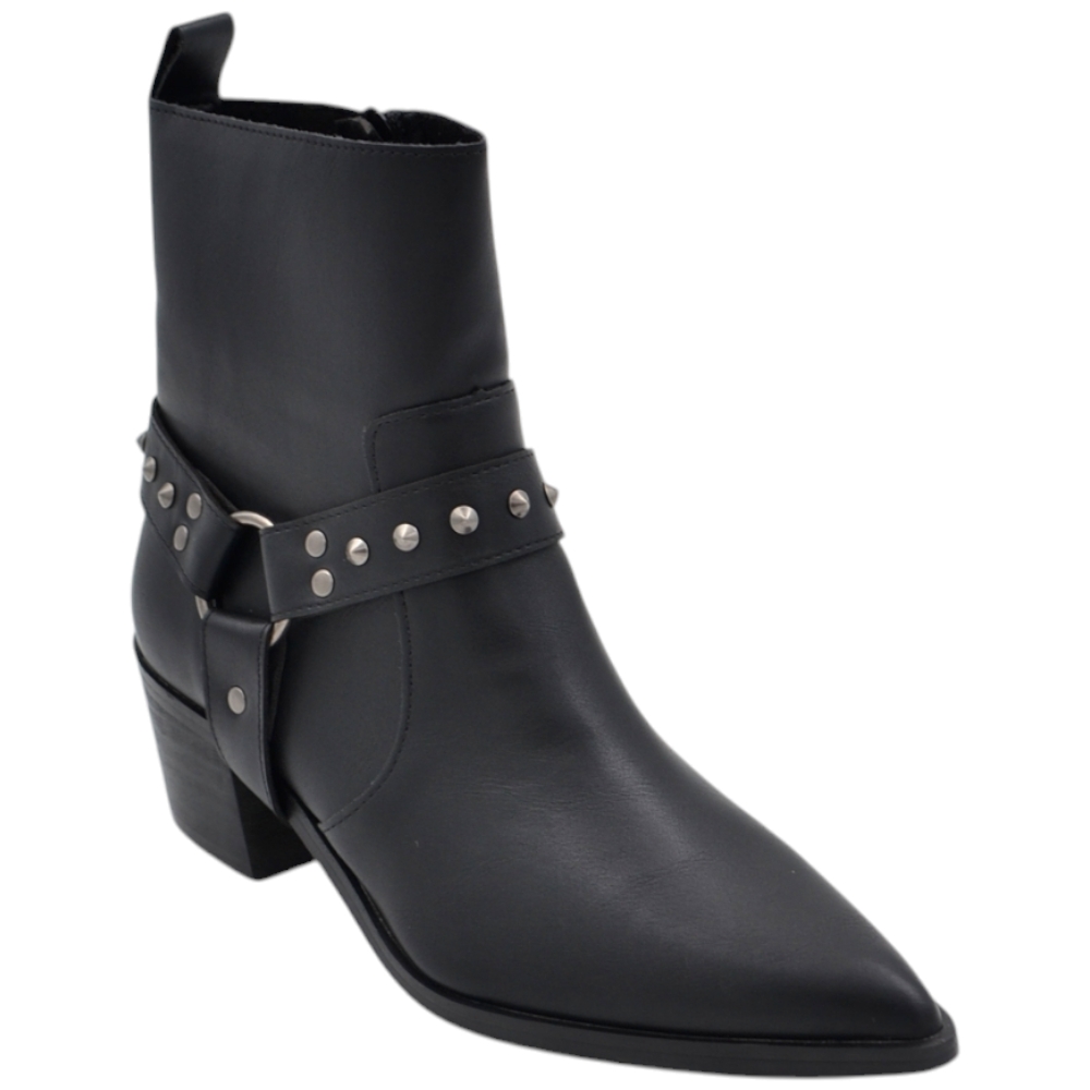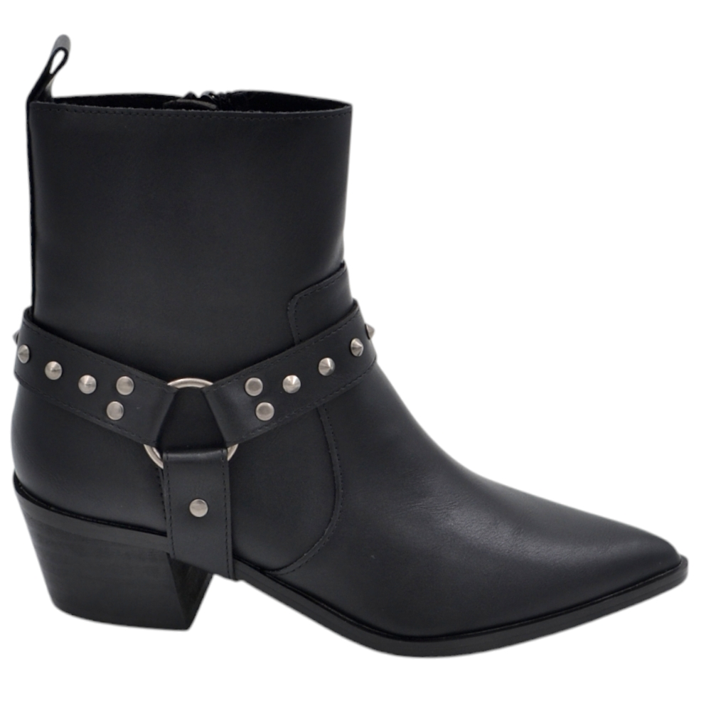 Stivalett Corina M4730 texano in pelle nera con fibbia cowboy borchie argento e zip