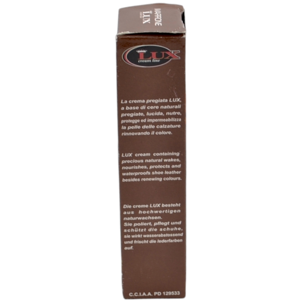 Questa crema, a base di cere naturali pregiate e lanolina, lucida, nutre, protegge ed impermeabilizza la pelle delle calzature rinnovando il colore.