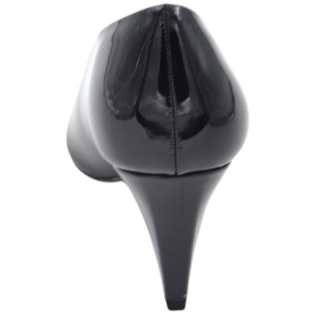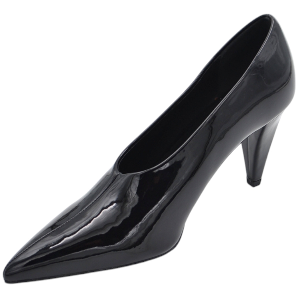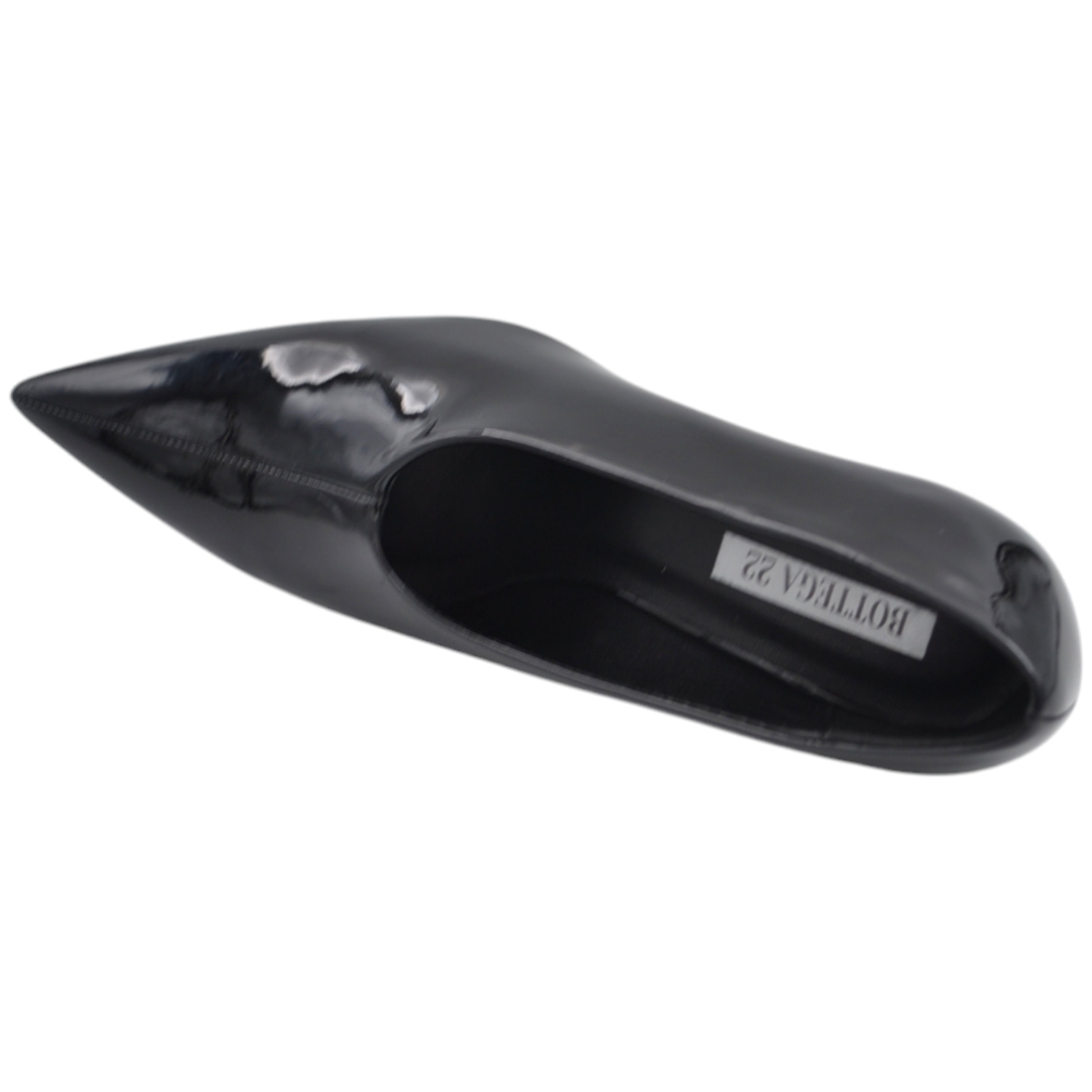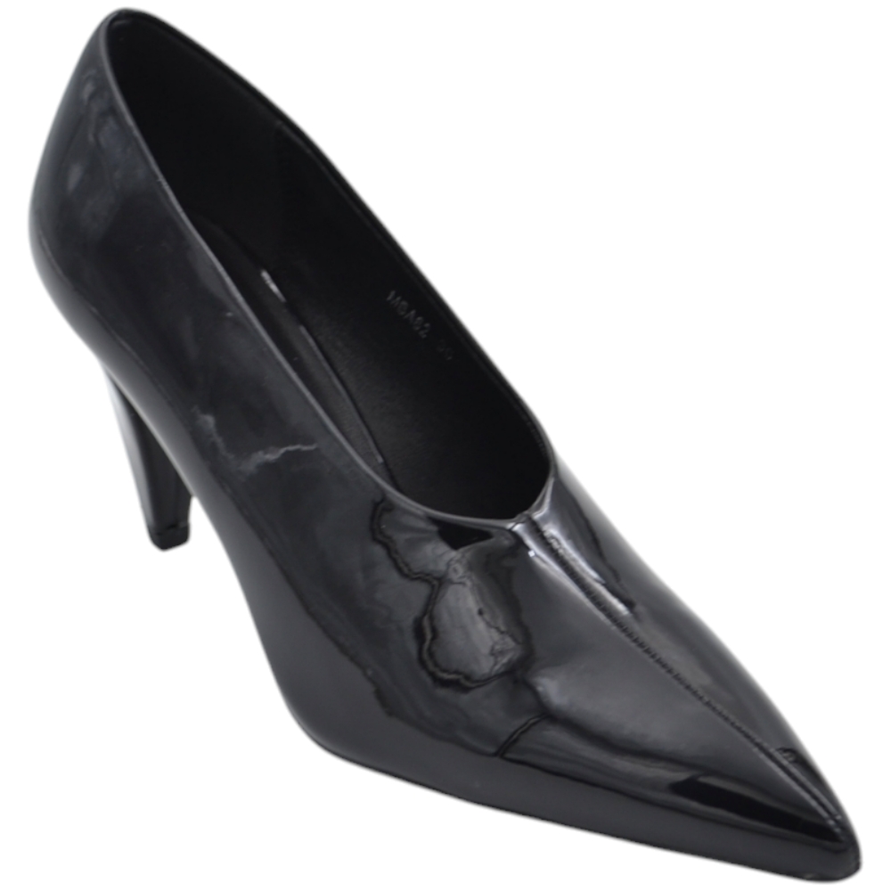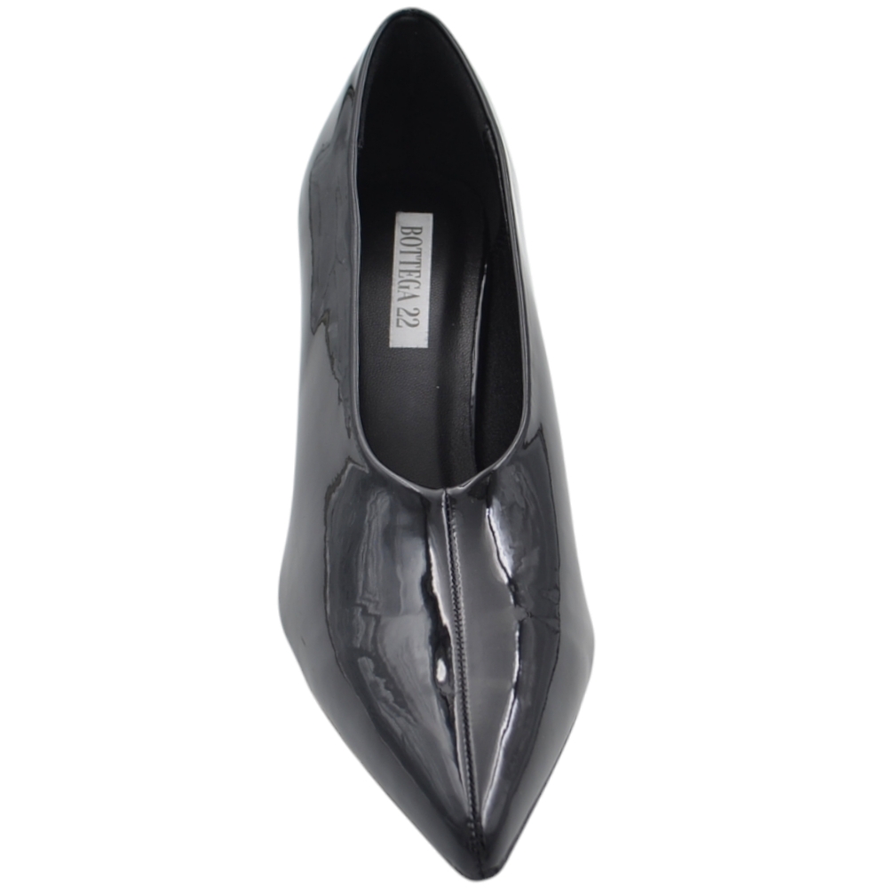 Decolette' donna accollato in pelle vernice lucida anni 30 nera punta tacco rocchetto 8 cm linea basic