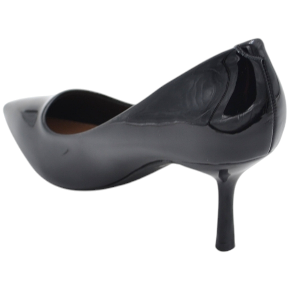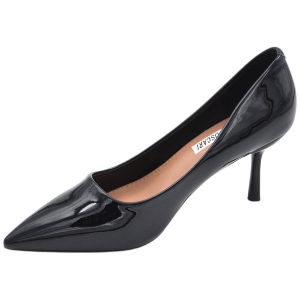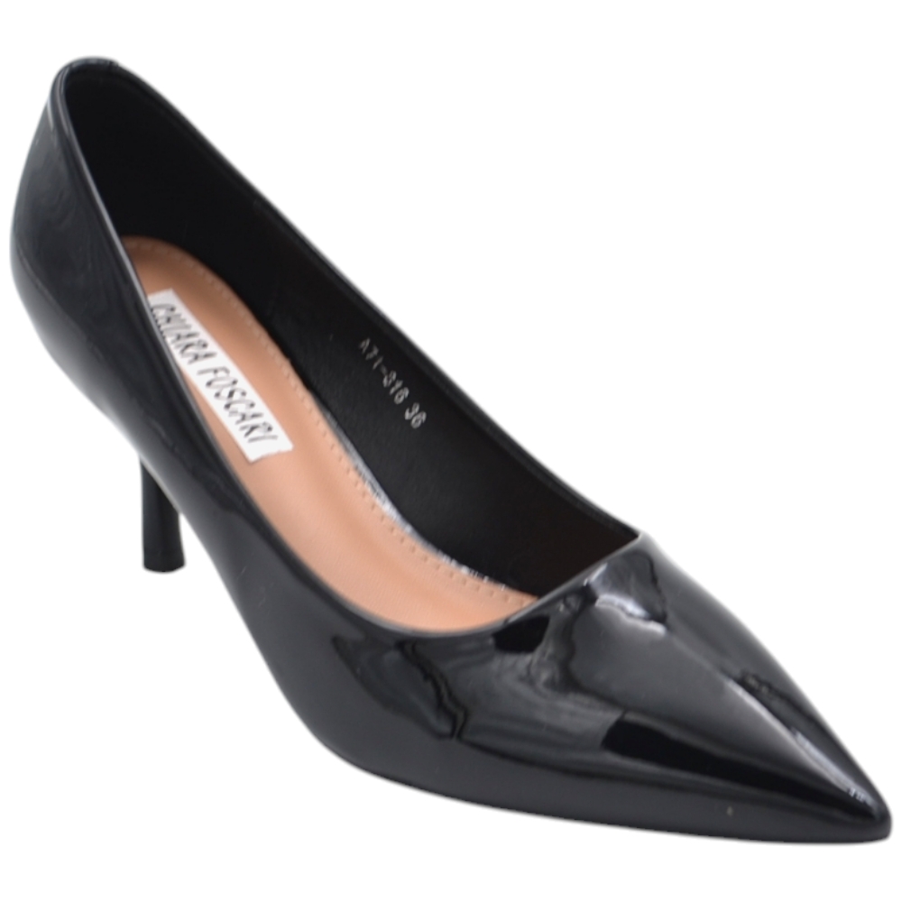 Decolette' donna in pelle vernice lucida nero con punta tacco sottile 6 cm linea basic