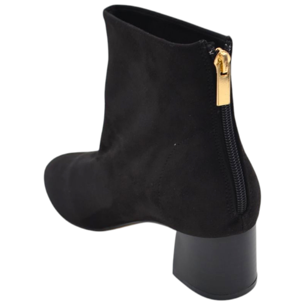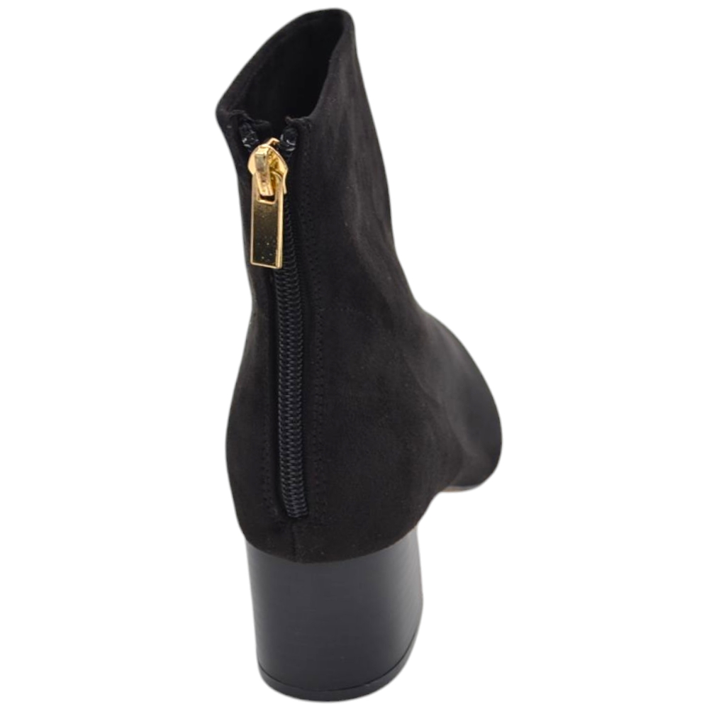 Stivaletto donna Corina M3850 in pelle scamosciata morbida nero con tacco in legno 5 cm zip laterale alla caviglia