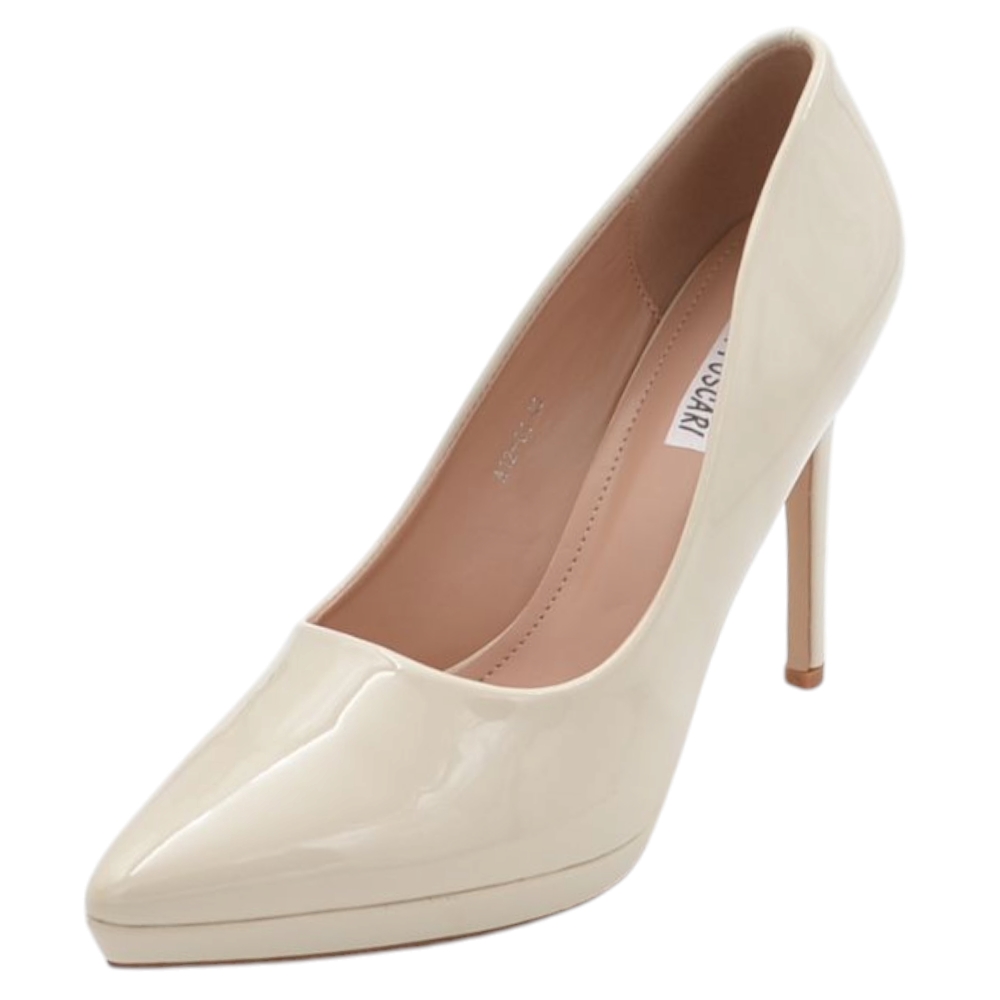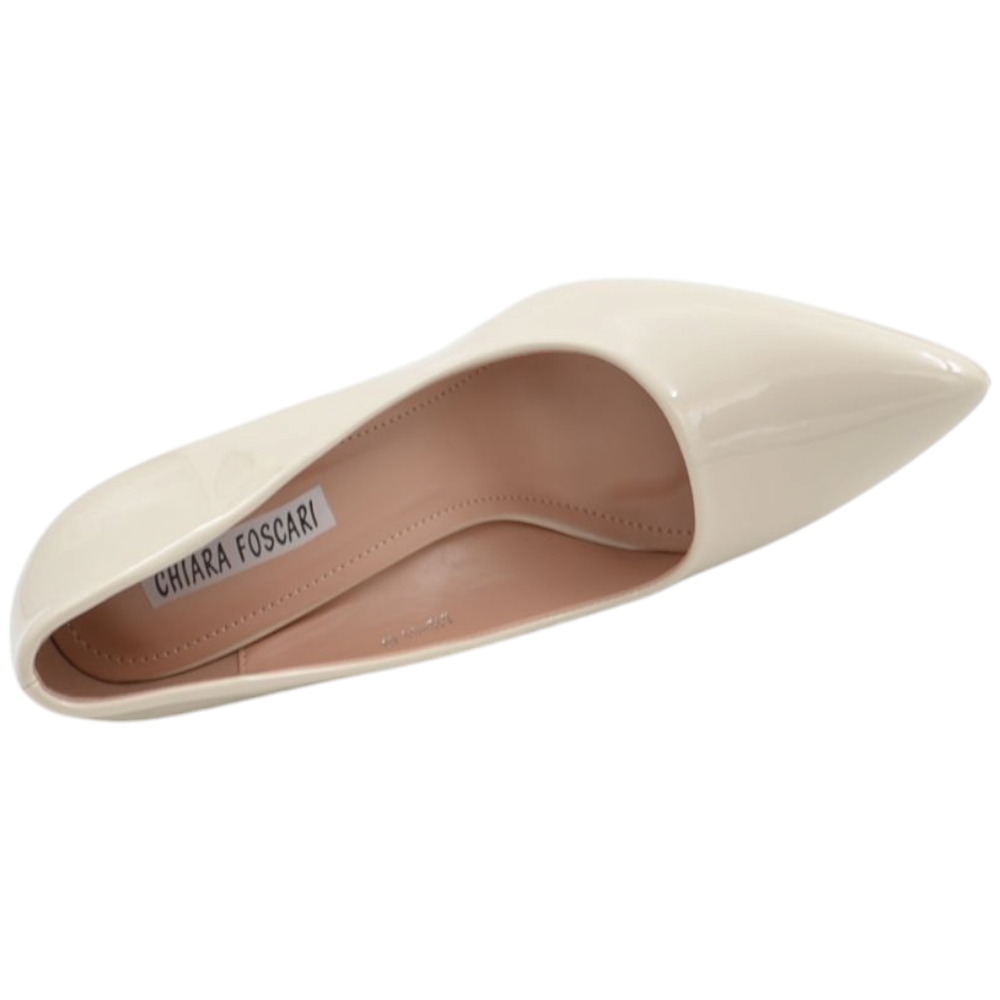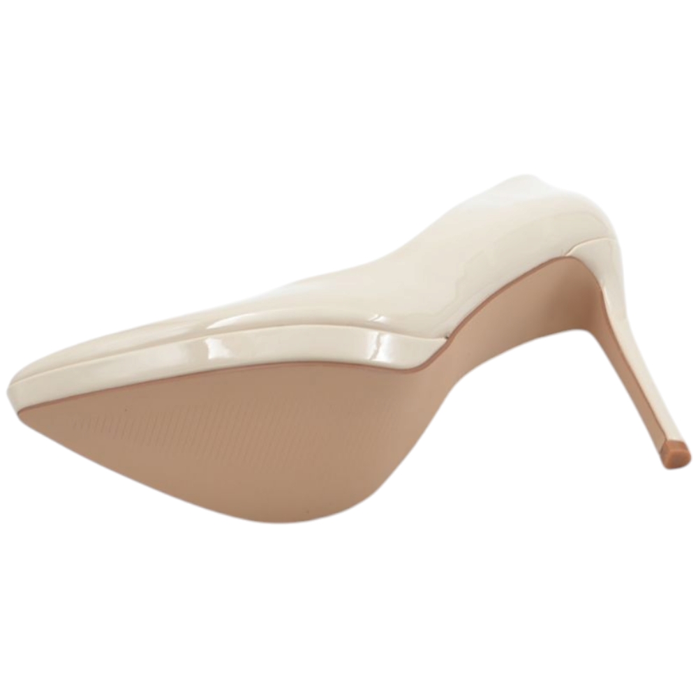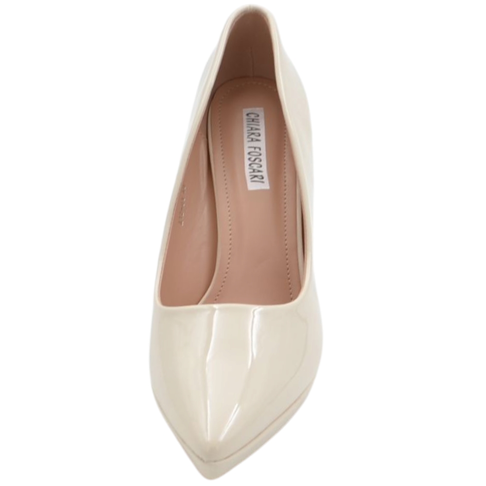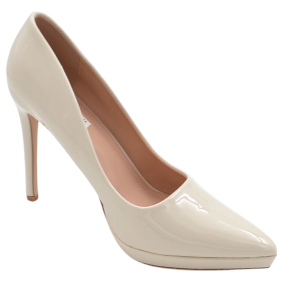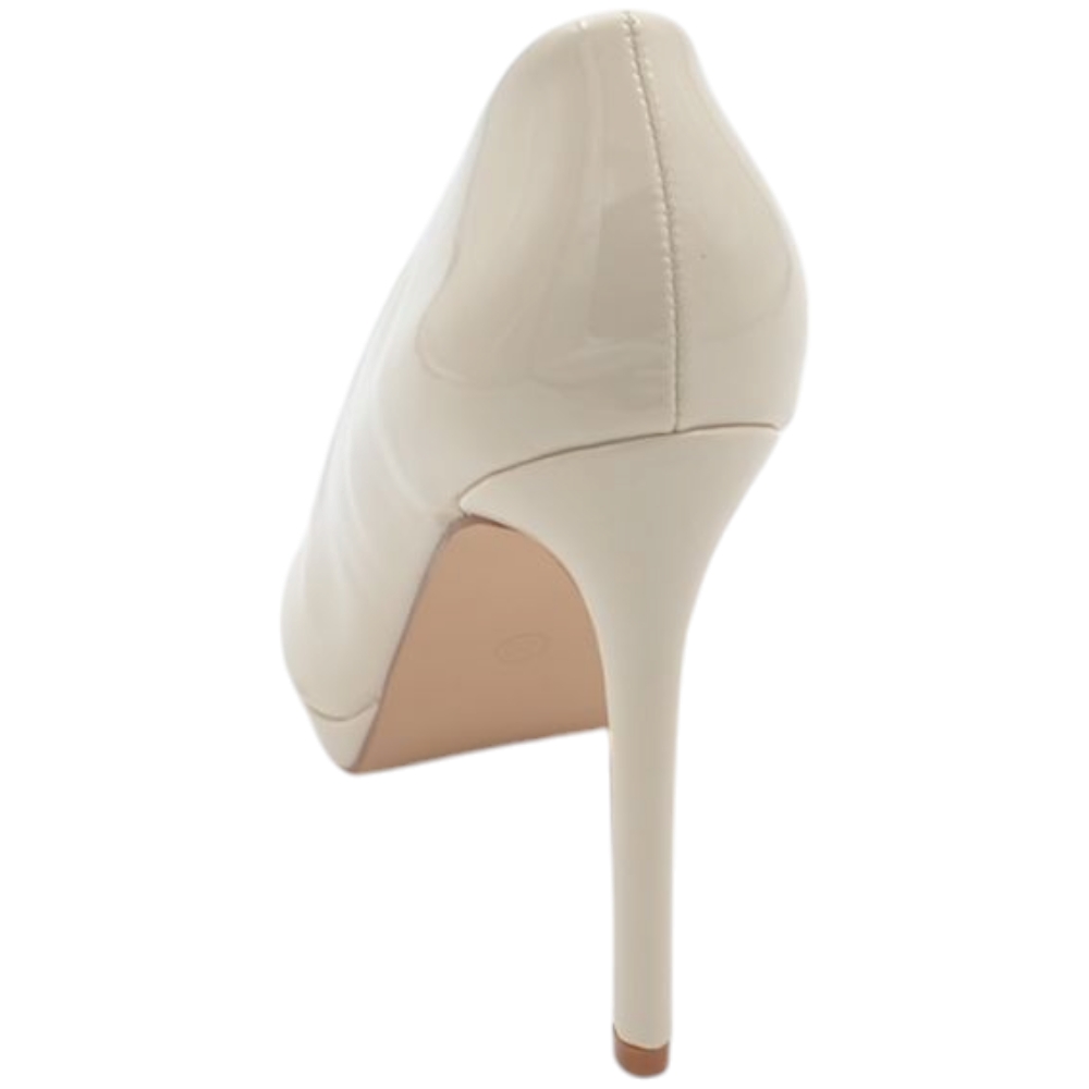 Decollete' donna a punta color burro vernice lucida tacco sottile 12 cm con plateau 2 cm sottopiede imbottito