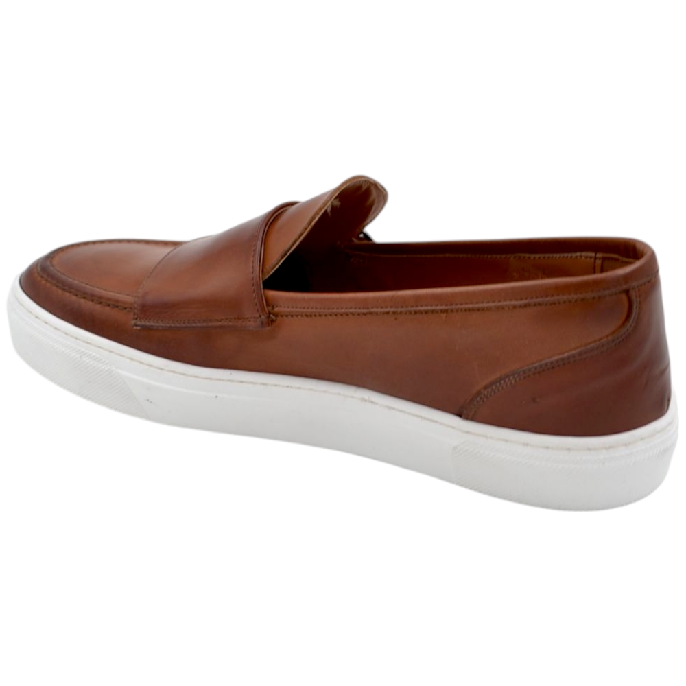 Mocassini uomo college bendina classico sportivo in vera pelle nappa cuoio spazzolato fondo bianco alto gomma.