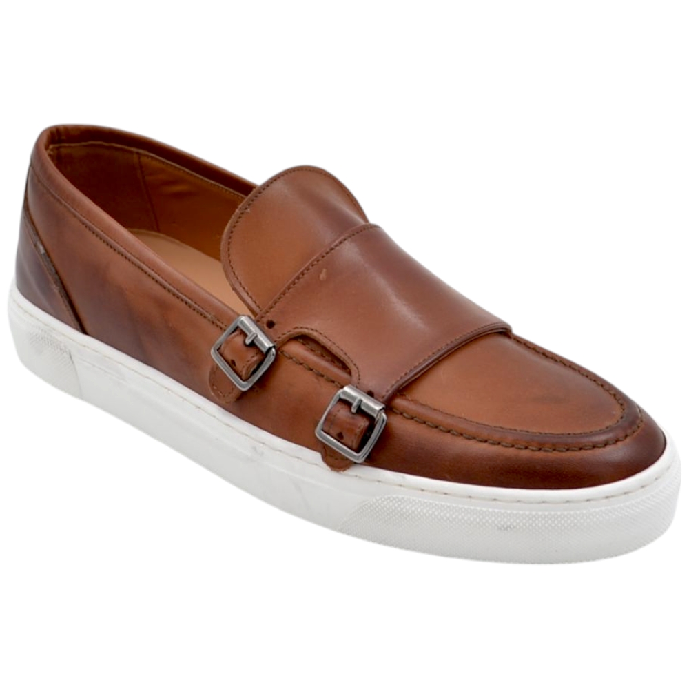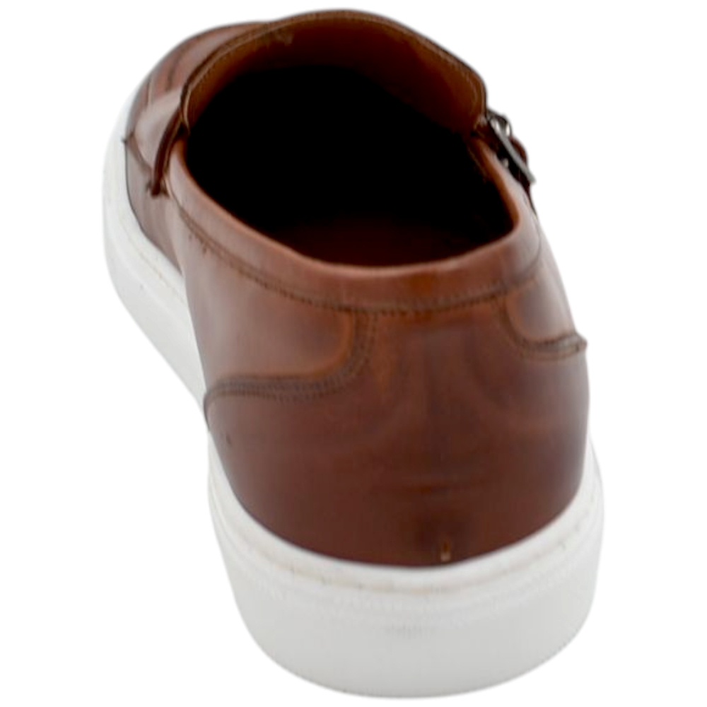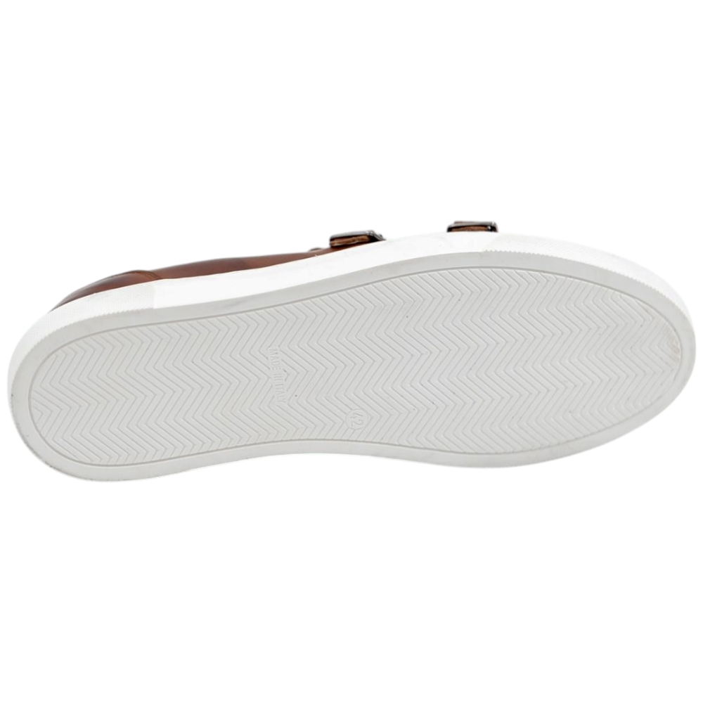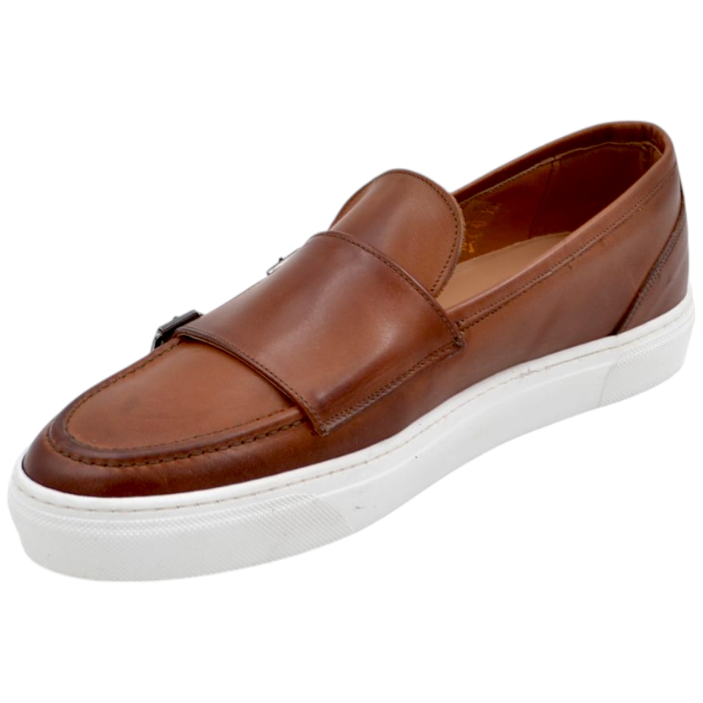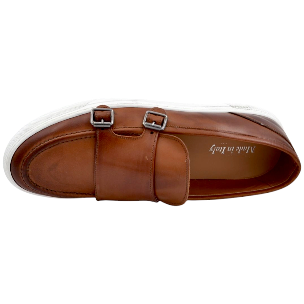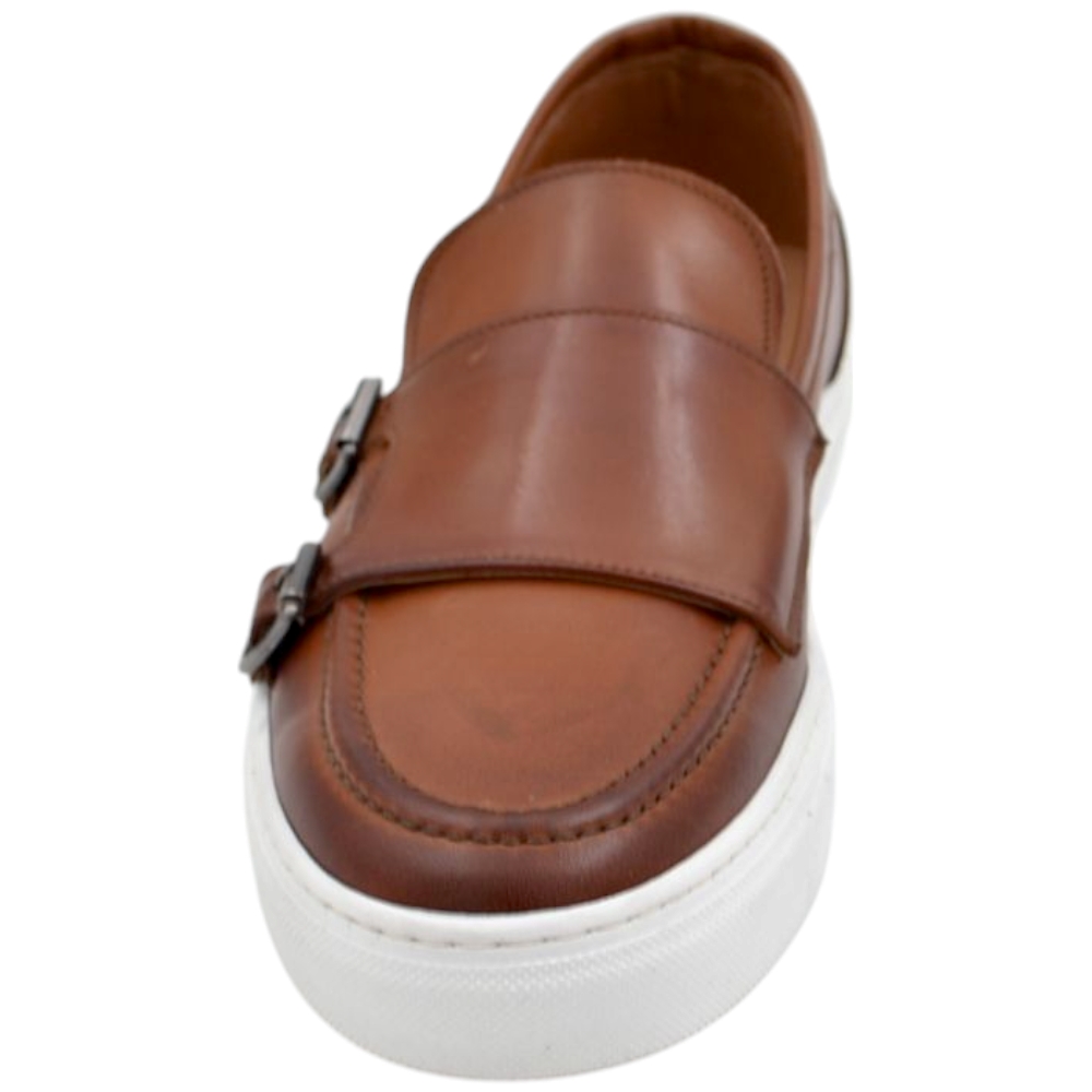 Mocassino doppia fibbia cuoio in vera pelle di nappa fondo classico sportivo gomma bianca 2,5 cm basic