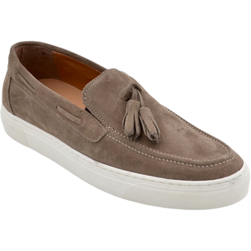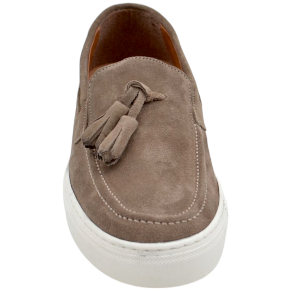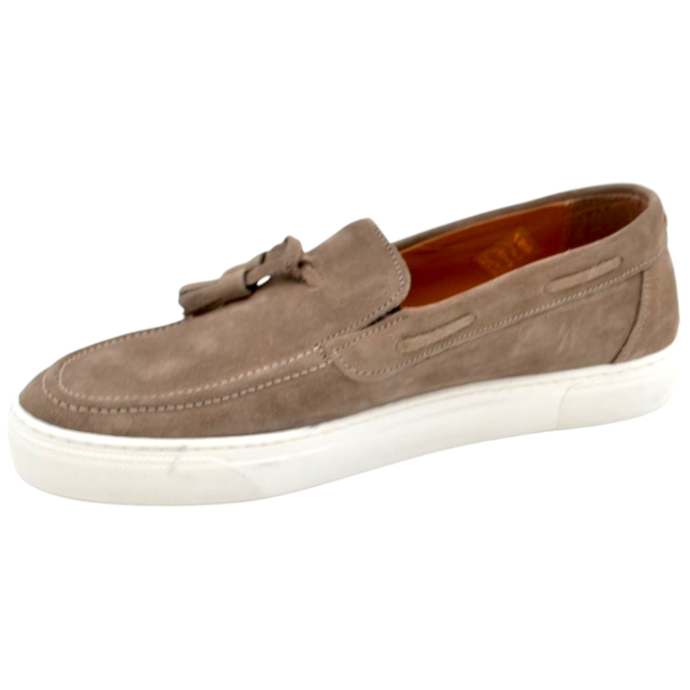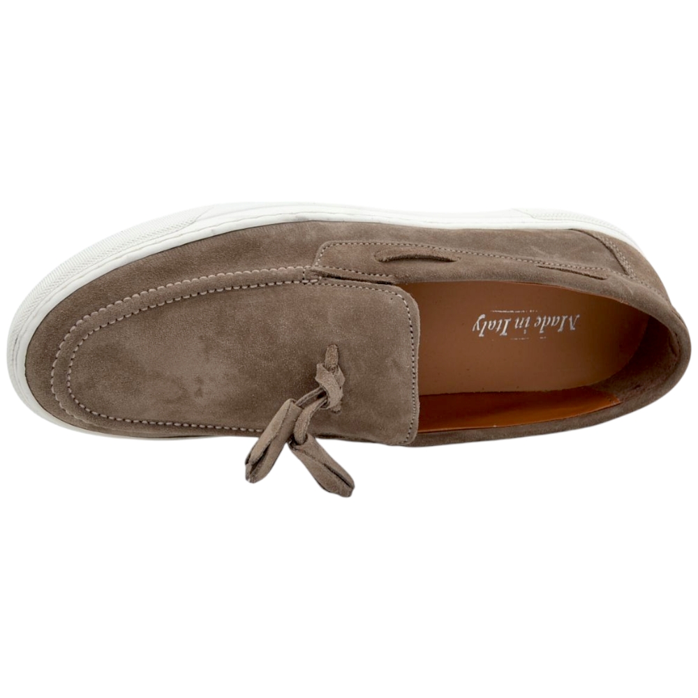 Scarpe uomo slip-on intenso in vera pelle scamosciata fondo bianco genuine leather made in italy.