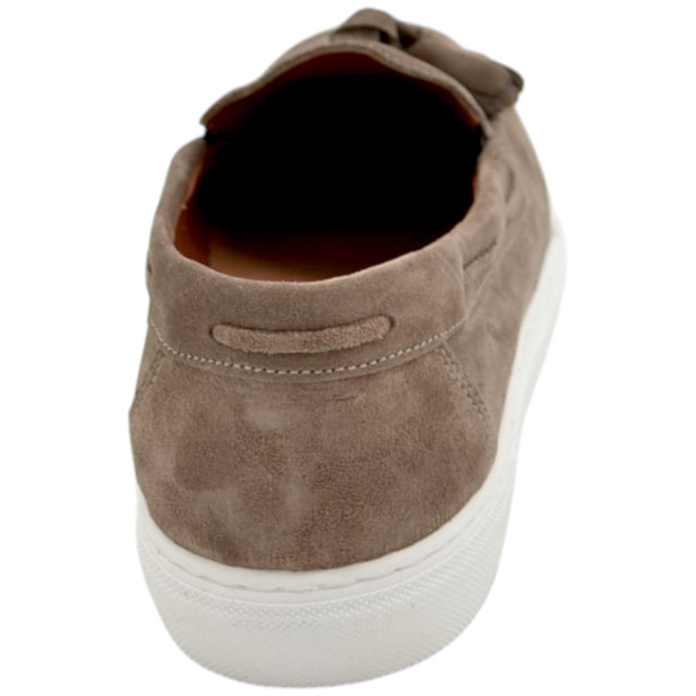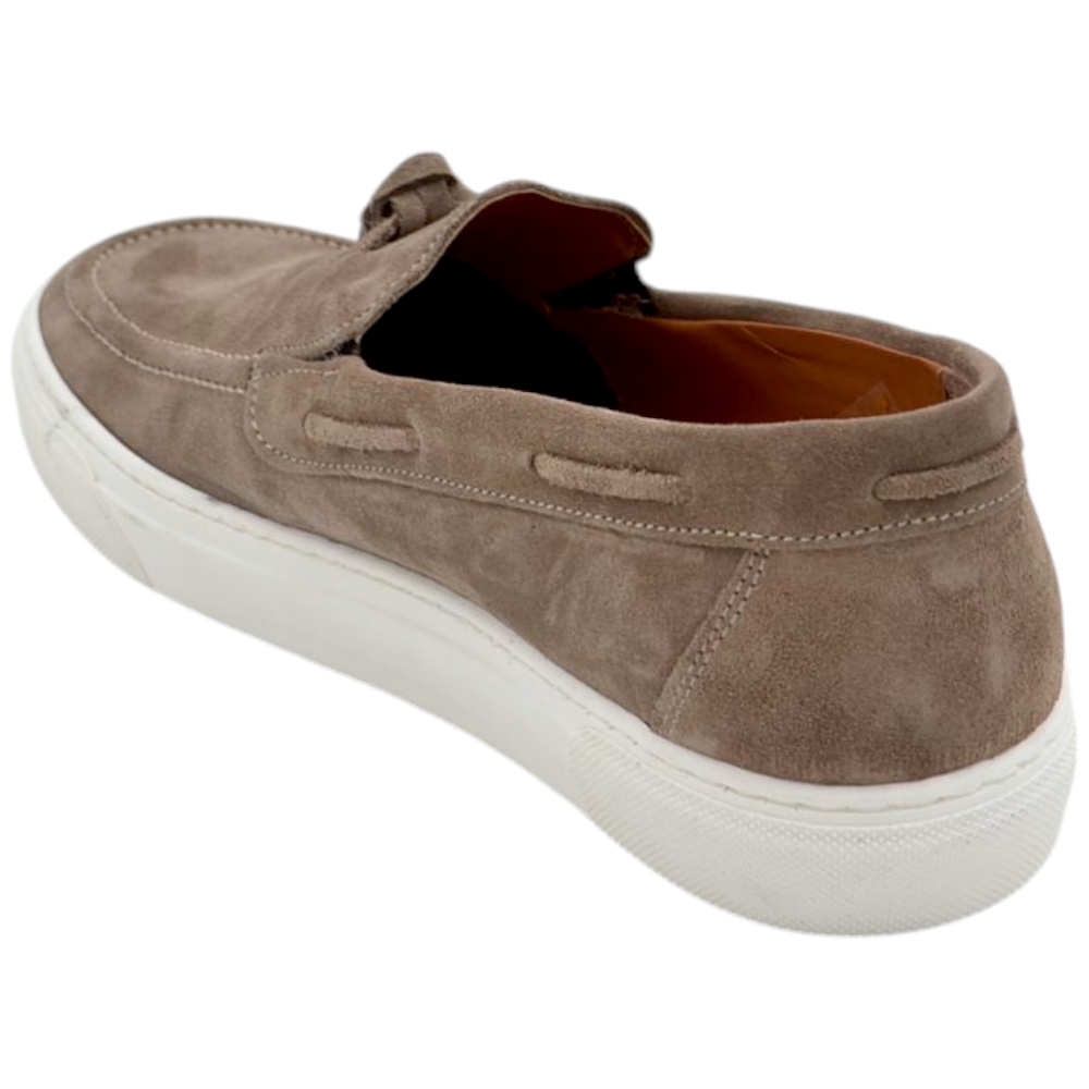 Mocassino uomo in vera pelle scamosciata beige con Nappine elastico fondo classico sportivo bianco basic 2,5 cm