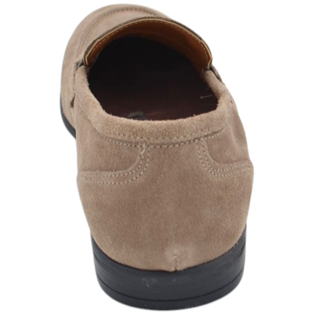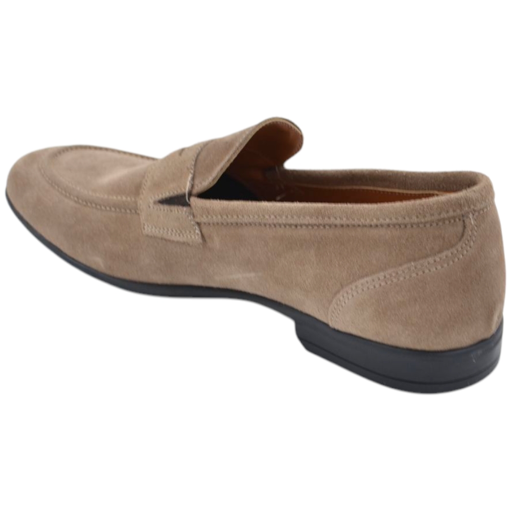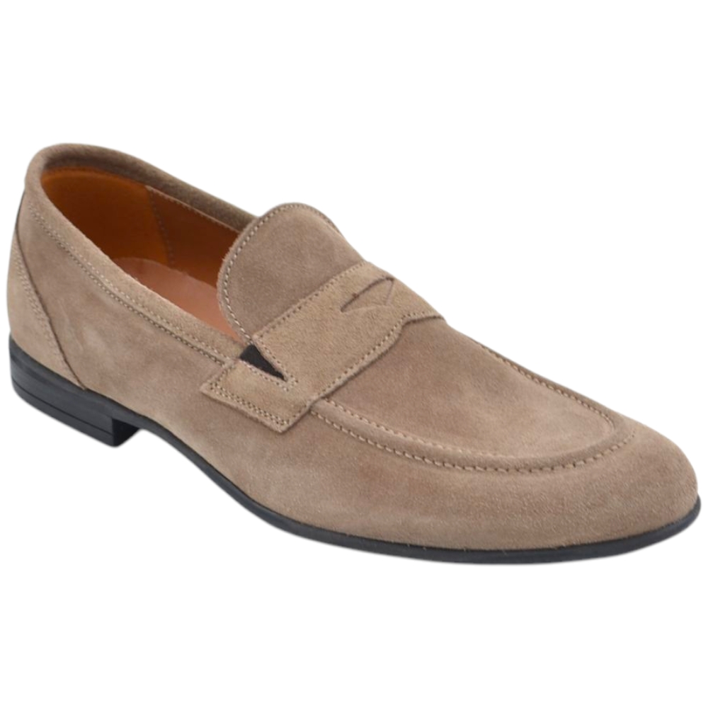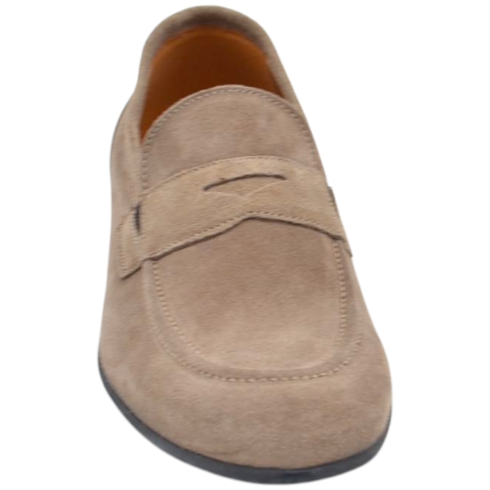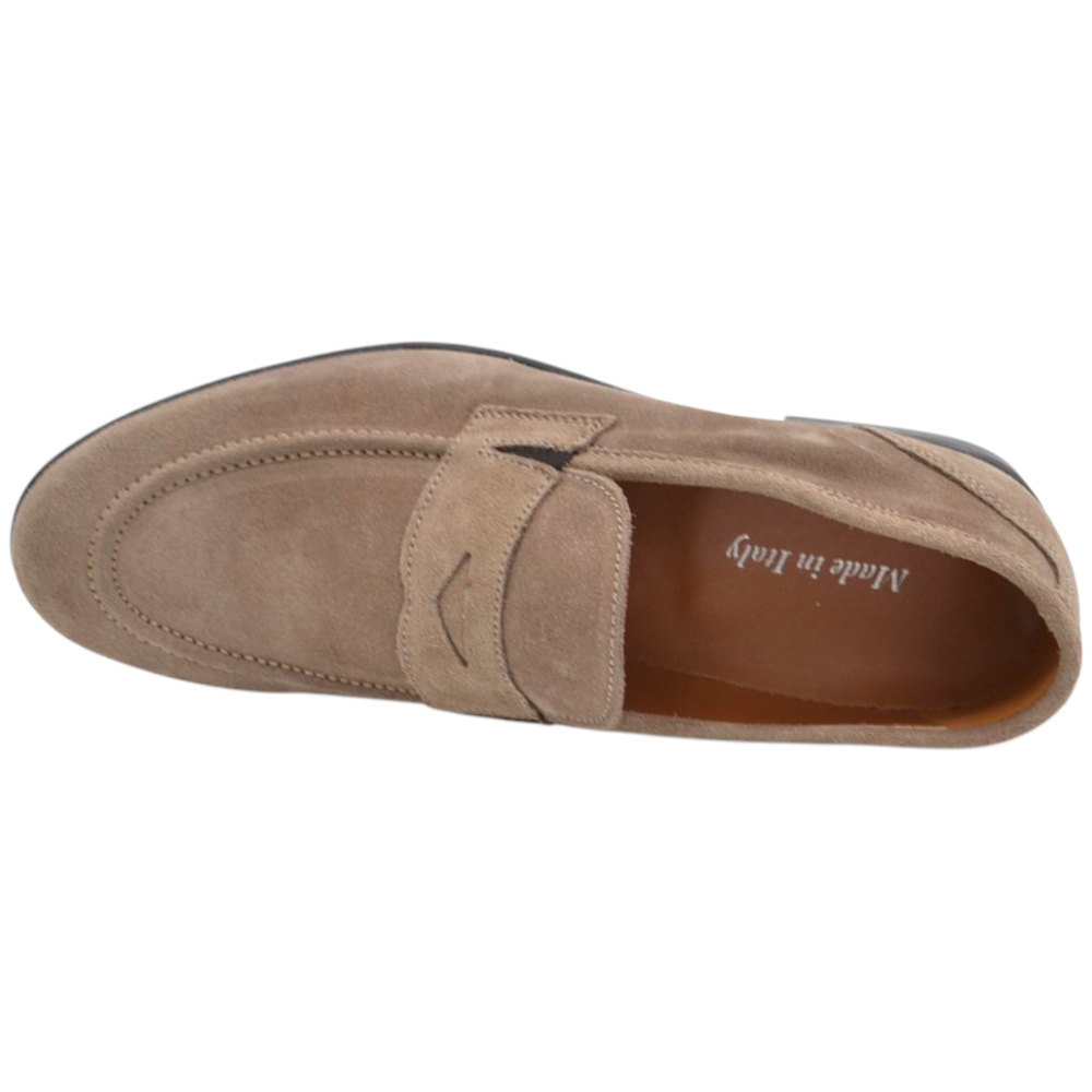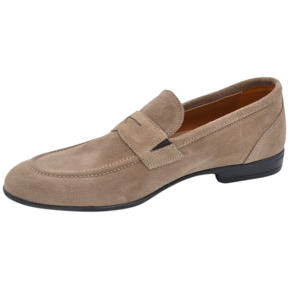 Mocassino uomo con bendina in vera pelle scamosciata beige con fondo sottile in gomma handmade in italy