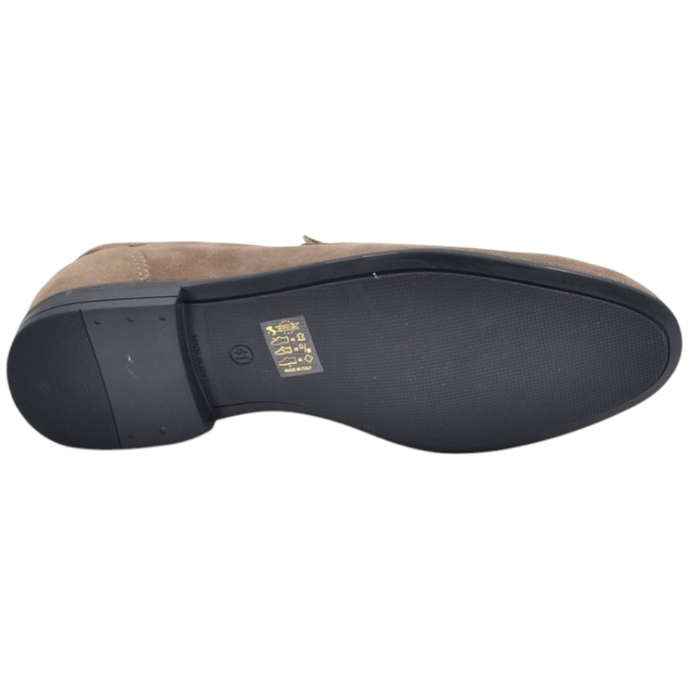Scarpe mocassino uomo elegante nappine vera pelle scamosciato beige suola in cuoio antiscivolo cerimonia evento.
