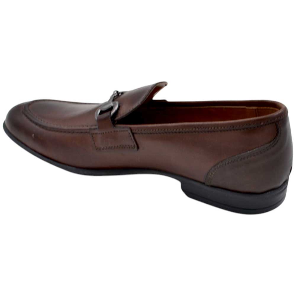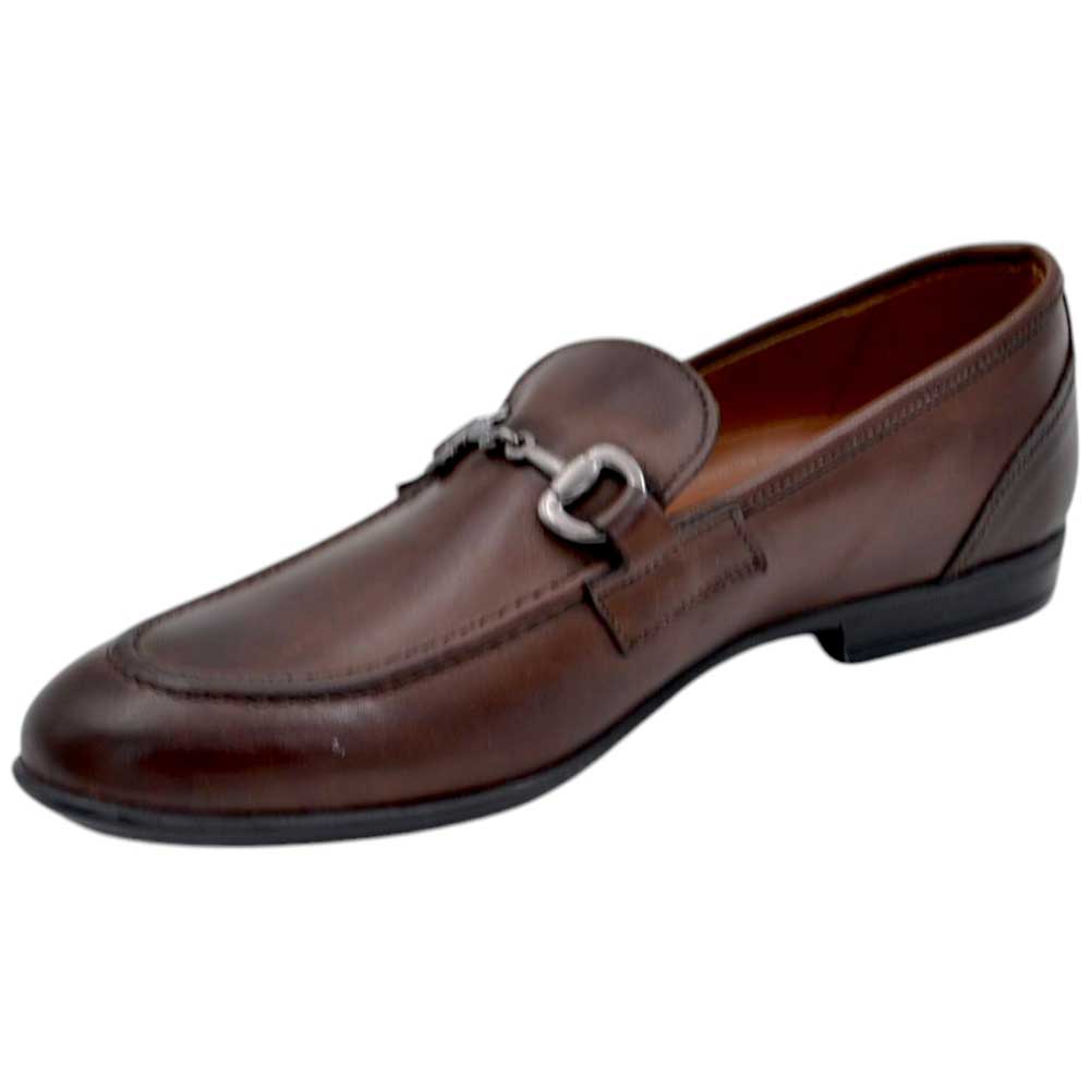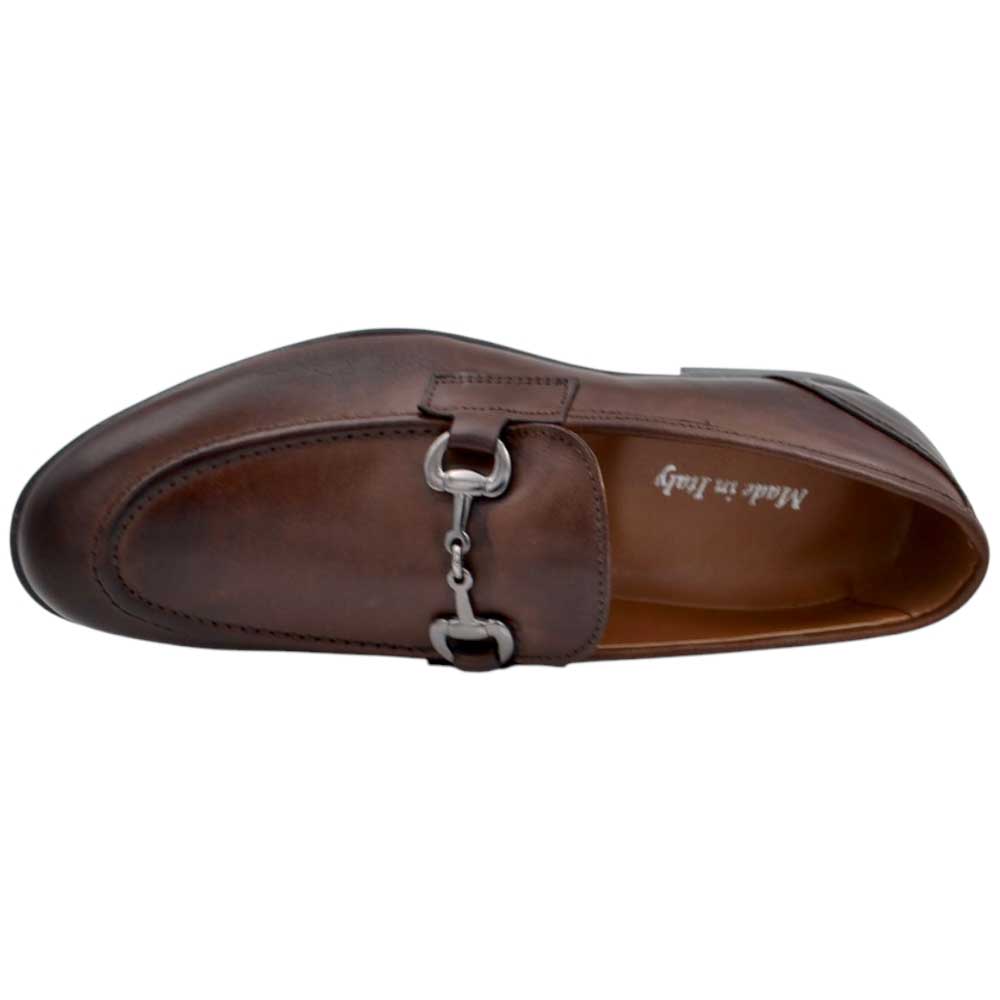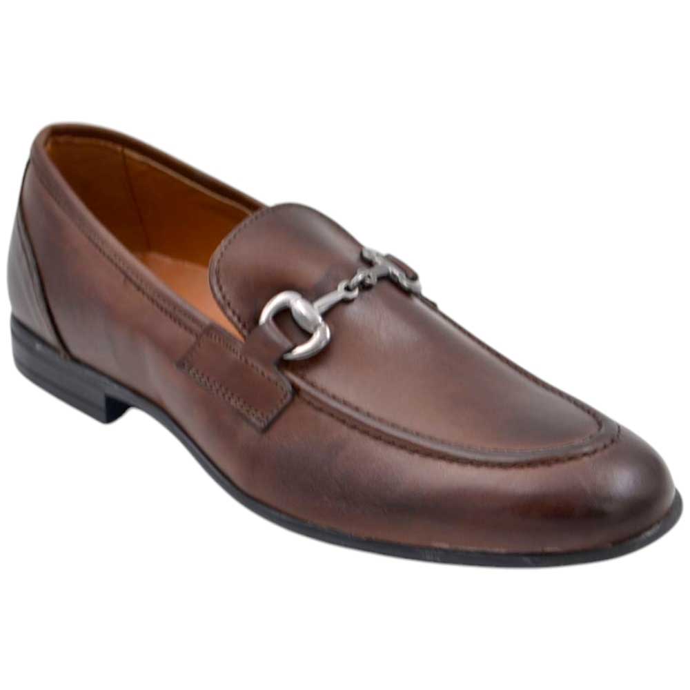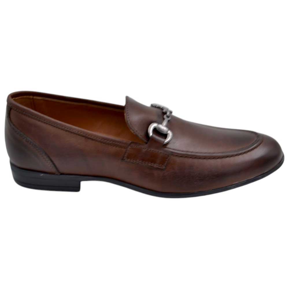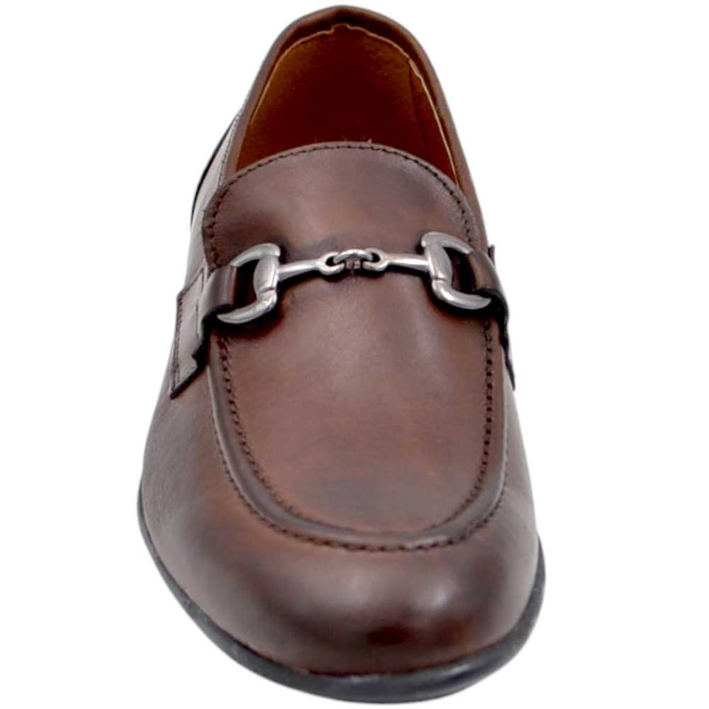 Scarpa mocassino uomo con morsetto argento vera pelle di nappa marrone cucita a mano fondo sottile in gomma antiscivolo