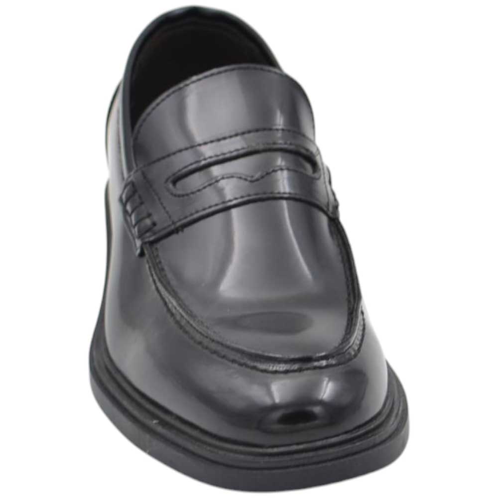 Mocassini uomo slip on classico vera pelle lucida blu striatura vernice fondo vero cuoio antiscivolo cerimonia dandy.